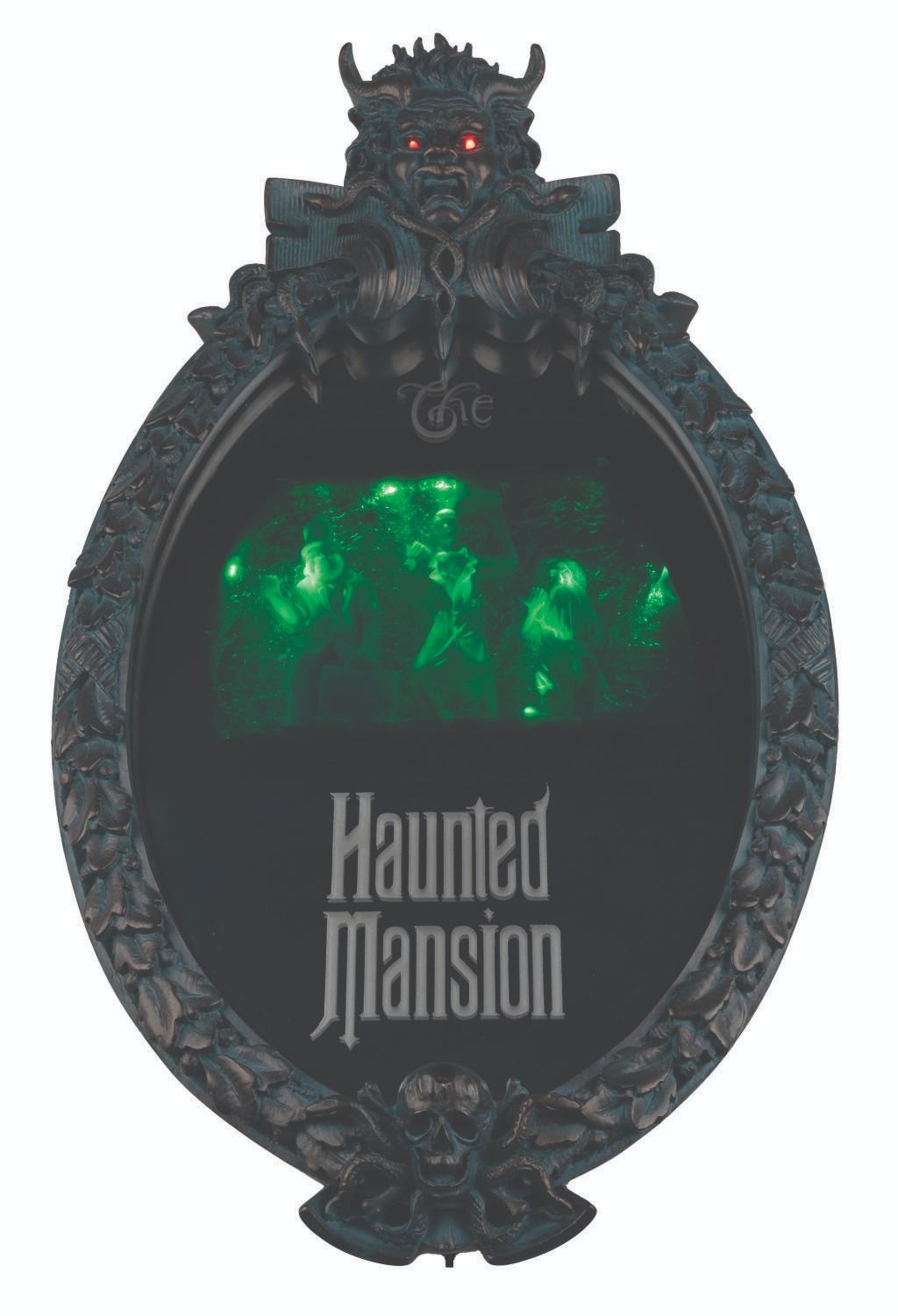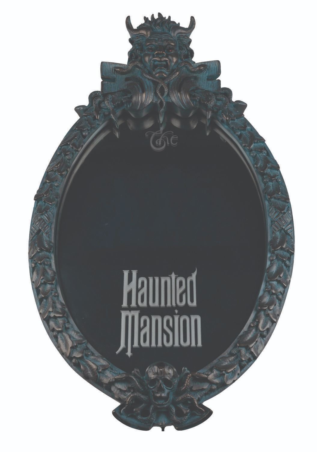 (Disneyland) A Haunted Mansion Gate Plaque Light Up Mirror. The mirror illuminates, revealing three Hitchhiking Ghosts and a ghostly voice, with the help of (3) AA batteries (not included). Measuring 13"x23", the mirror is in fine working condition.