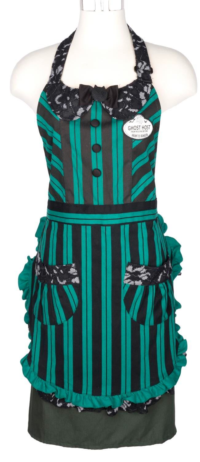 (Disney Parks, 2000s) A Haunted Mansion Maid apron, with embroidered Ghost Host "badge." In size "Adult", the apron is in fine unused condition.