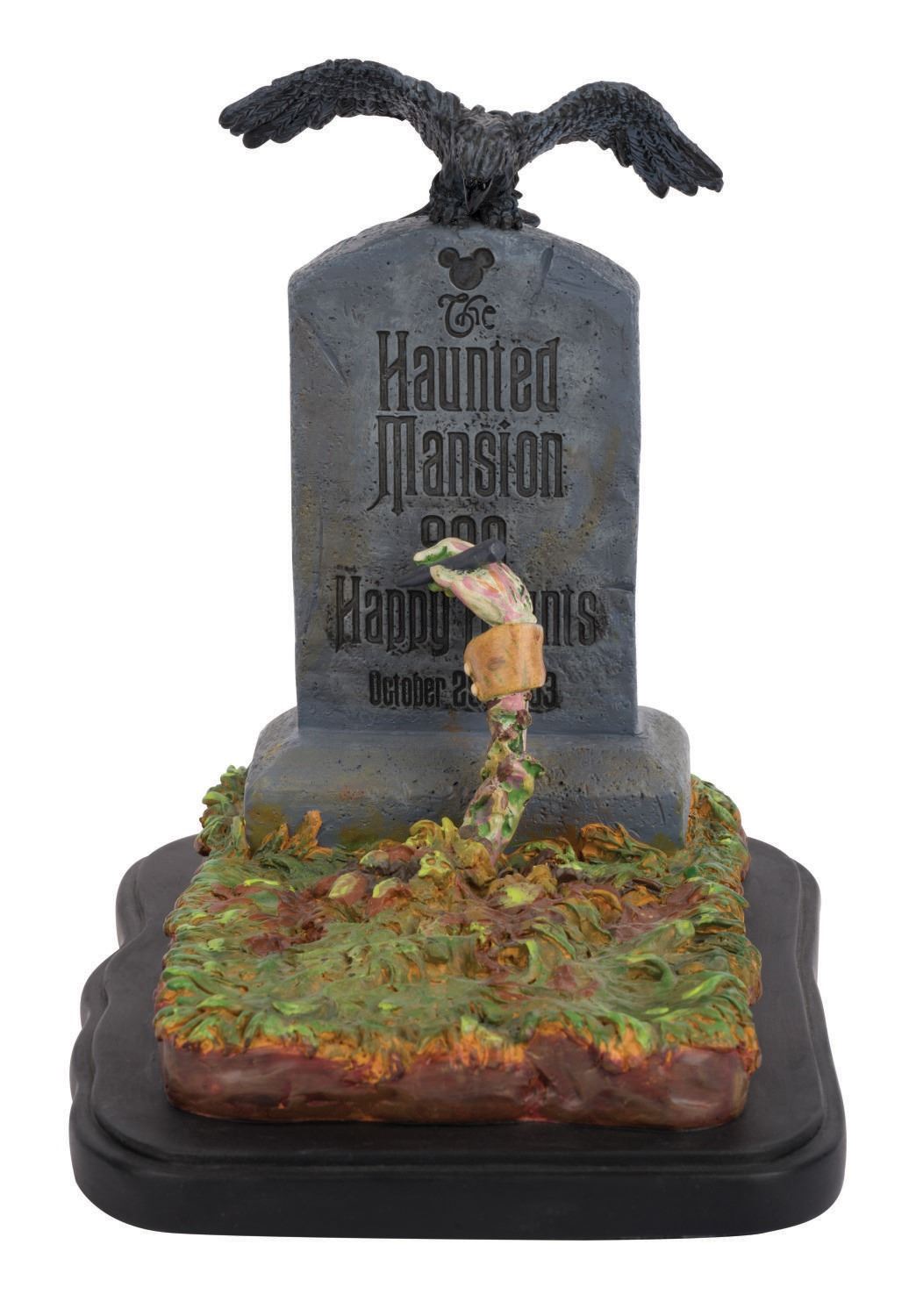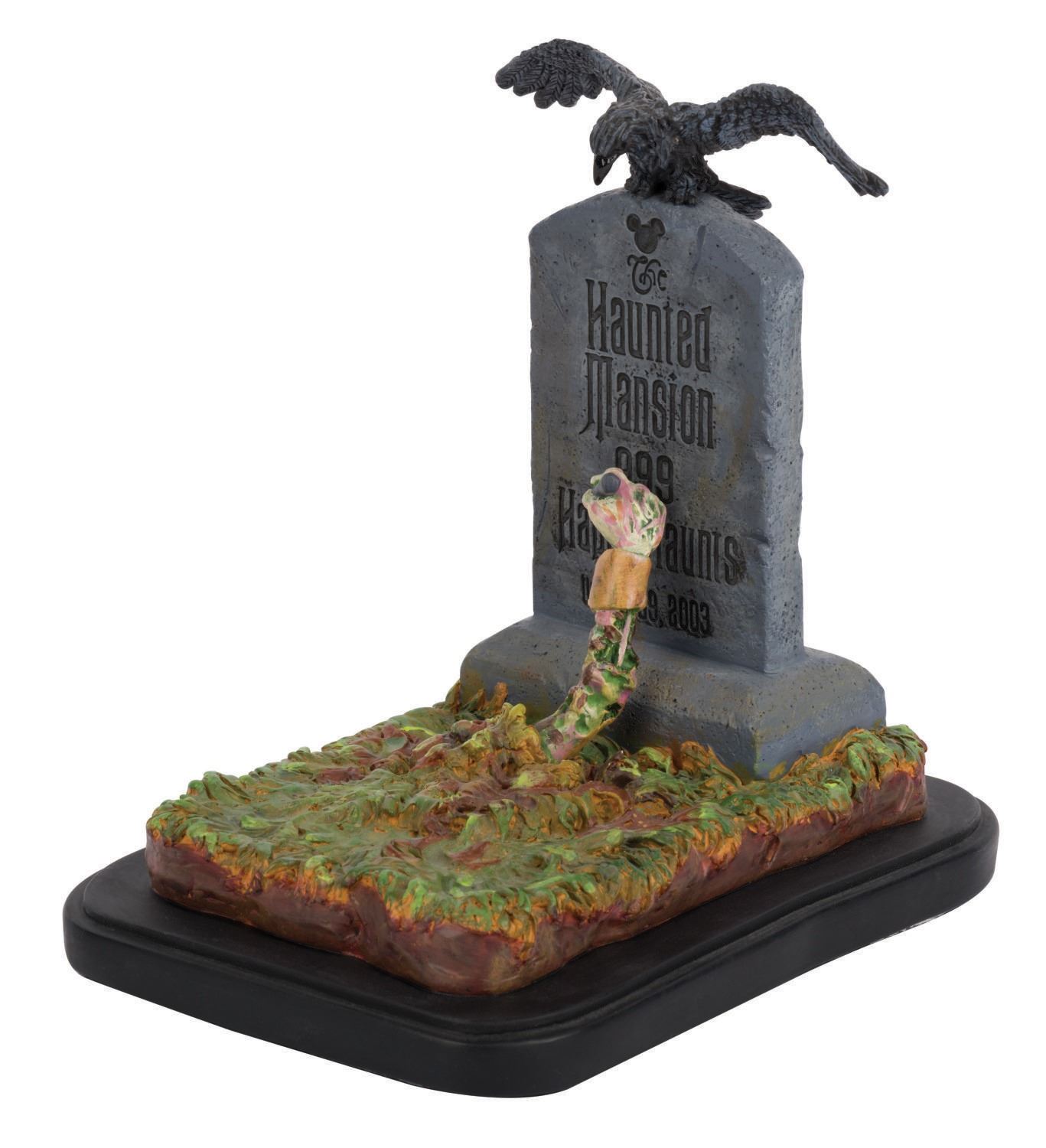 (Walt Disney World, 2003) "A Gift from the Ghouls You've Seen Tonight" statue inspired by The Haunted Mansion at The Magic Kingdom. The unnumbered piece was designed by artist Randy Noble and released in an edition size of 1,200 during "The Haunted Mansion 999 Happy Haunts" event on October 29, 2003, at The Magic Kingdom. The piece features illumination, sound effects, and requires two AA batteries (not included). Measuring 8.5" tall, and 8.75"x6.5", the statue is in fine working order, with Certificate of Verification, exhibiting the slightest corrosion in the battery compartment.