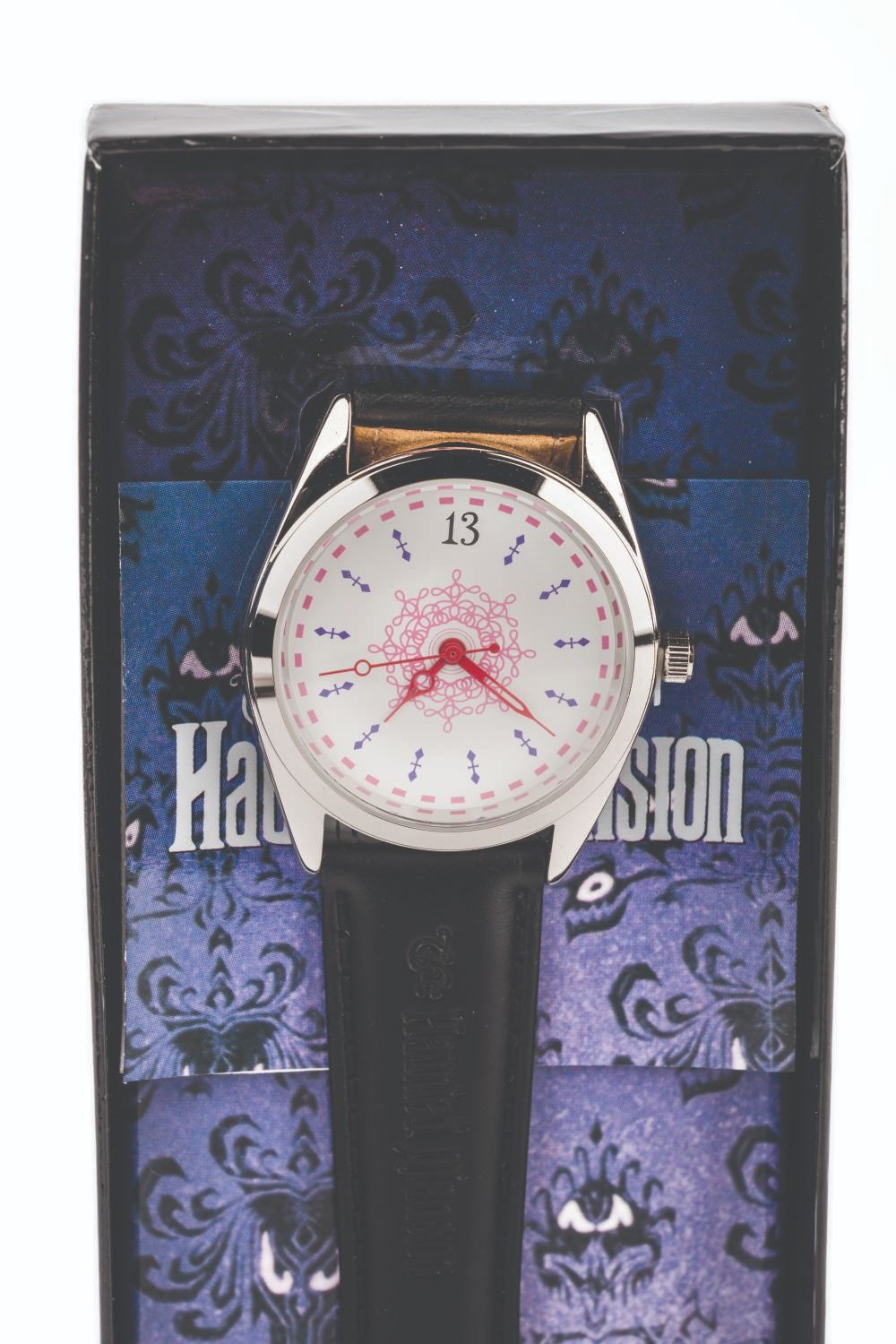 (Walt Disney World, 1999) A Haunted Mansion grandfather clock wristwatch featuring a face numbered up to 13. Measuring 9.25" long, the timepiece numbered "190 of 500" is in fine condition in its original box.