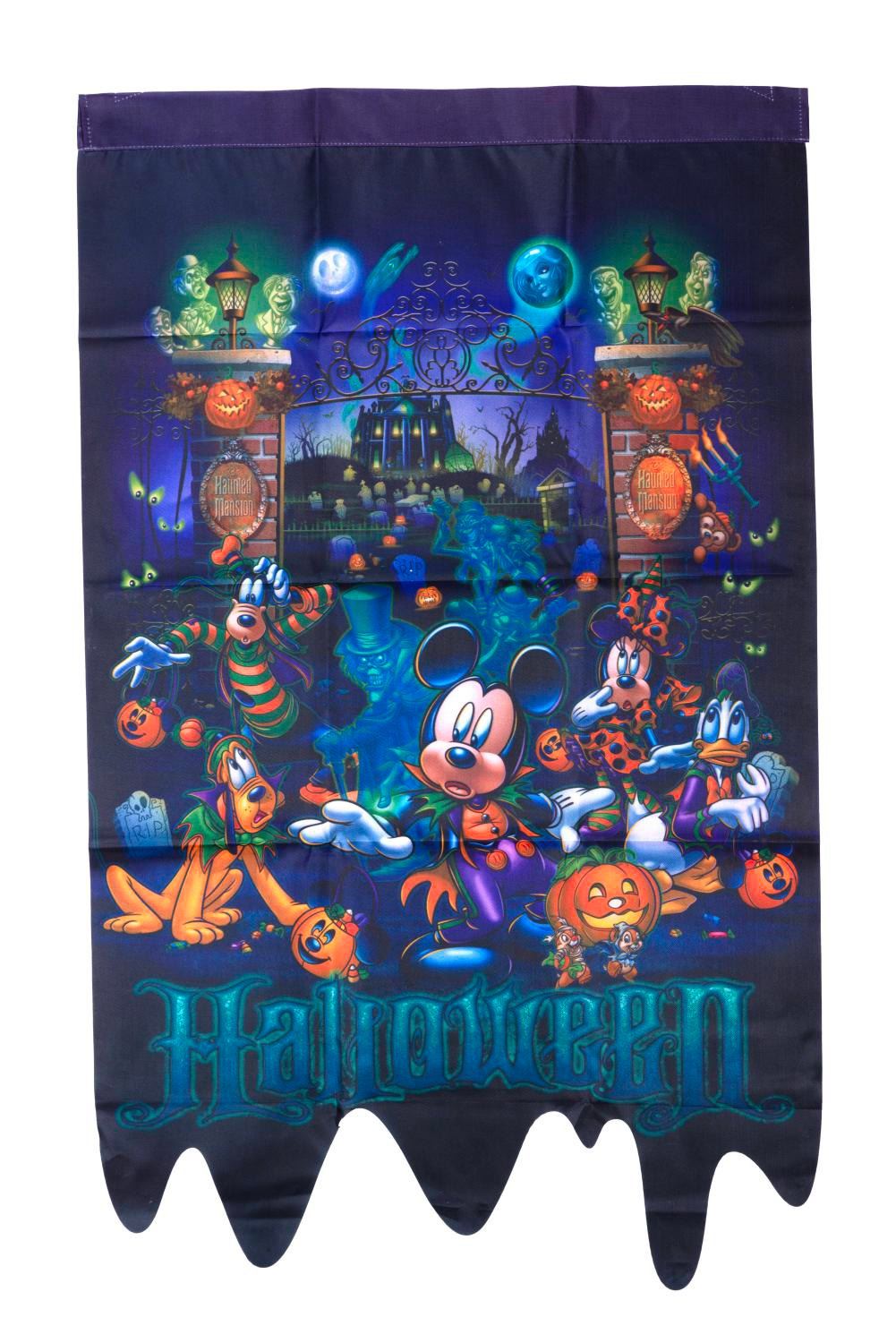 (Disney Parks) A souvenir Disney Parks Halloween banner. The decorative banner depicts Mickey and friends trick or treating. Measuring 43"x26", the banner is in fine unused condition.