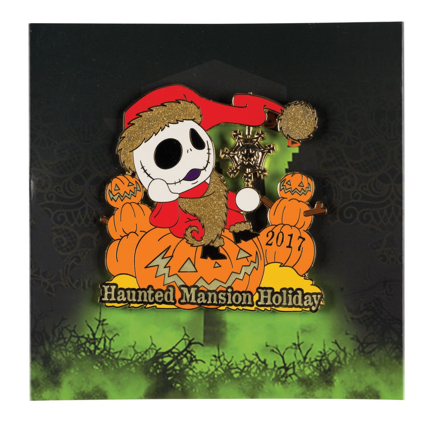 (Disneyland, 2017) A limited edition pin commemorating The Haunted Mansion Holiday event at Disneyland Resort. The big pin features a spinning snowflake, Jack Skellington dressed for the winter season festivities, and was limited to an edition of 1000. Measuring 3"x3", the pin is in fine condition on original card.