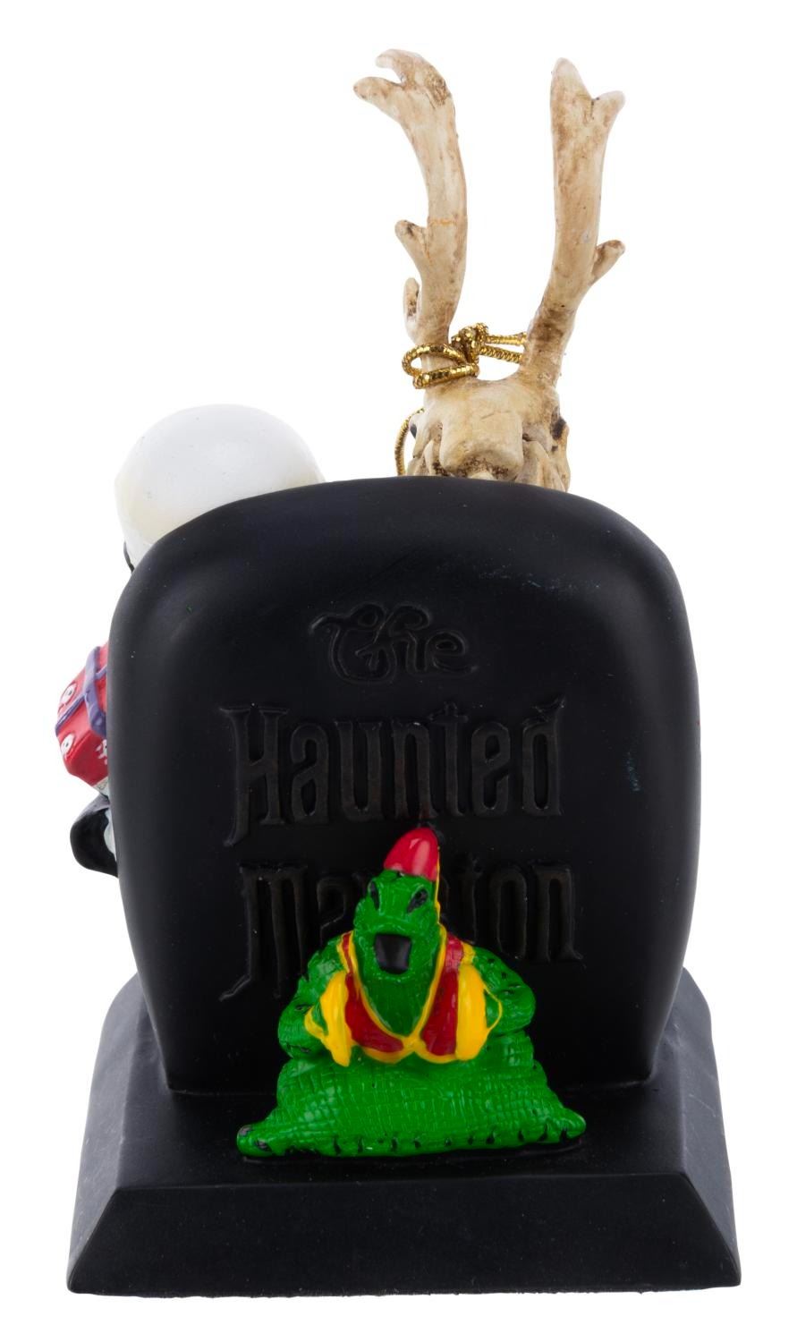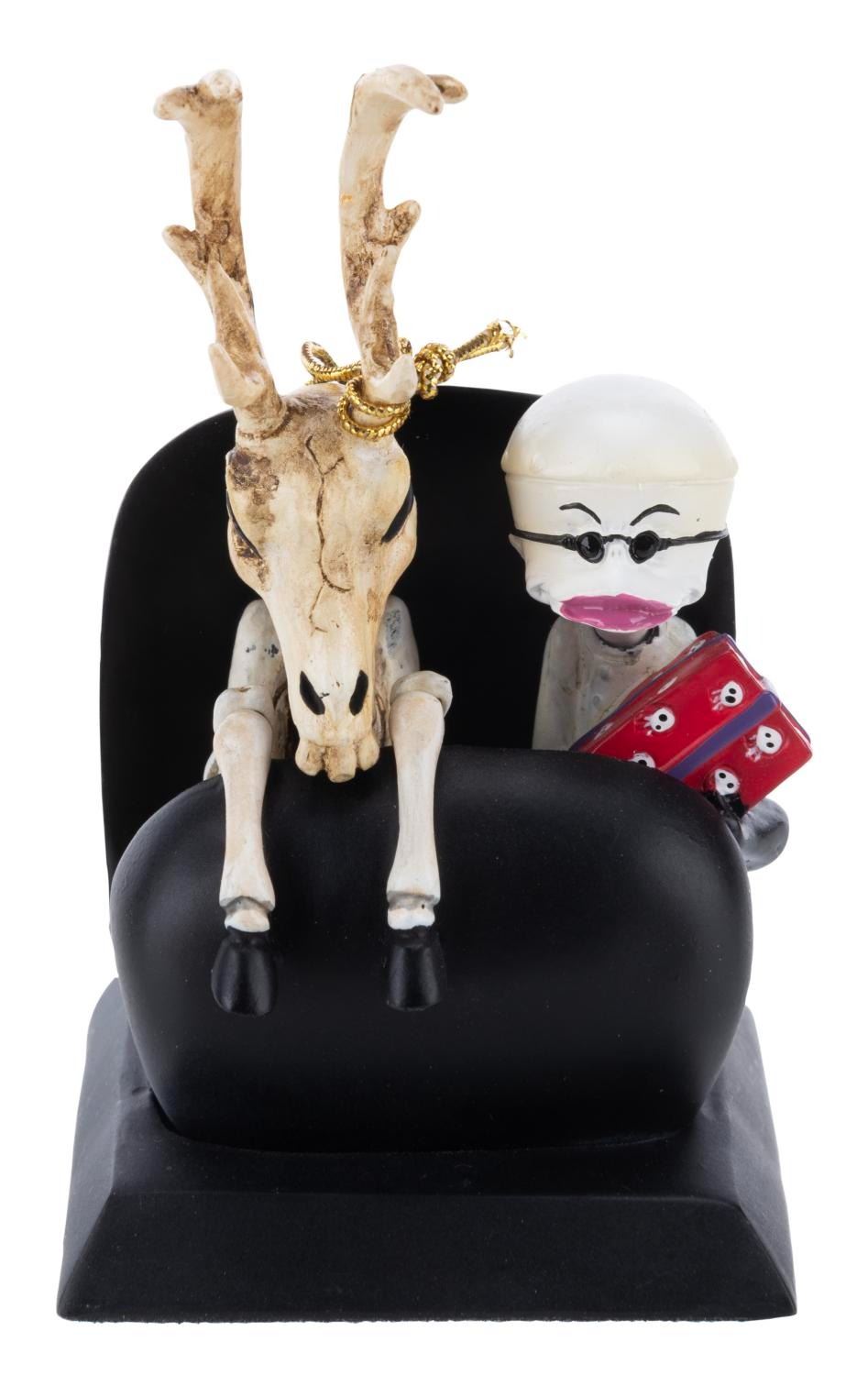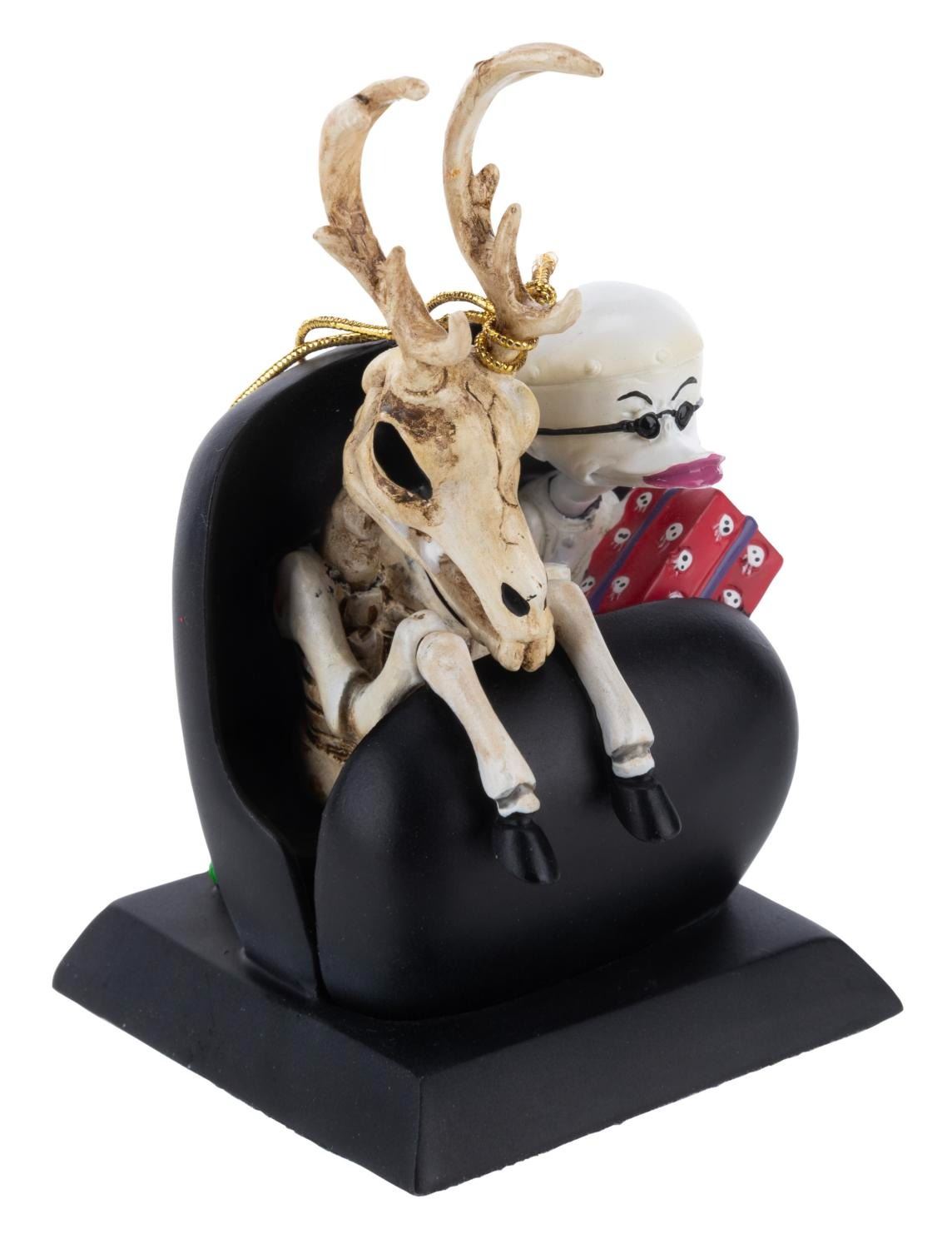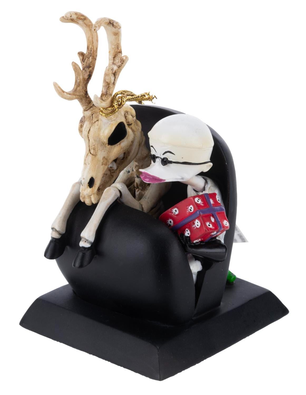 (Disneyland, 2002) A figurine of Dr. Finkelstein and skeleton reindeer riding in a Doom Buggy, released for the second Haunted Mansion Holiday in 2002. Standing 3.5" tall, the figurine is in fine condition with the original box. Note that the price tag is affixed to the antlers.