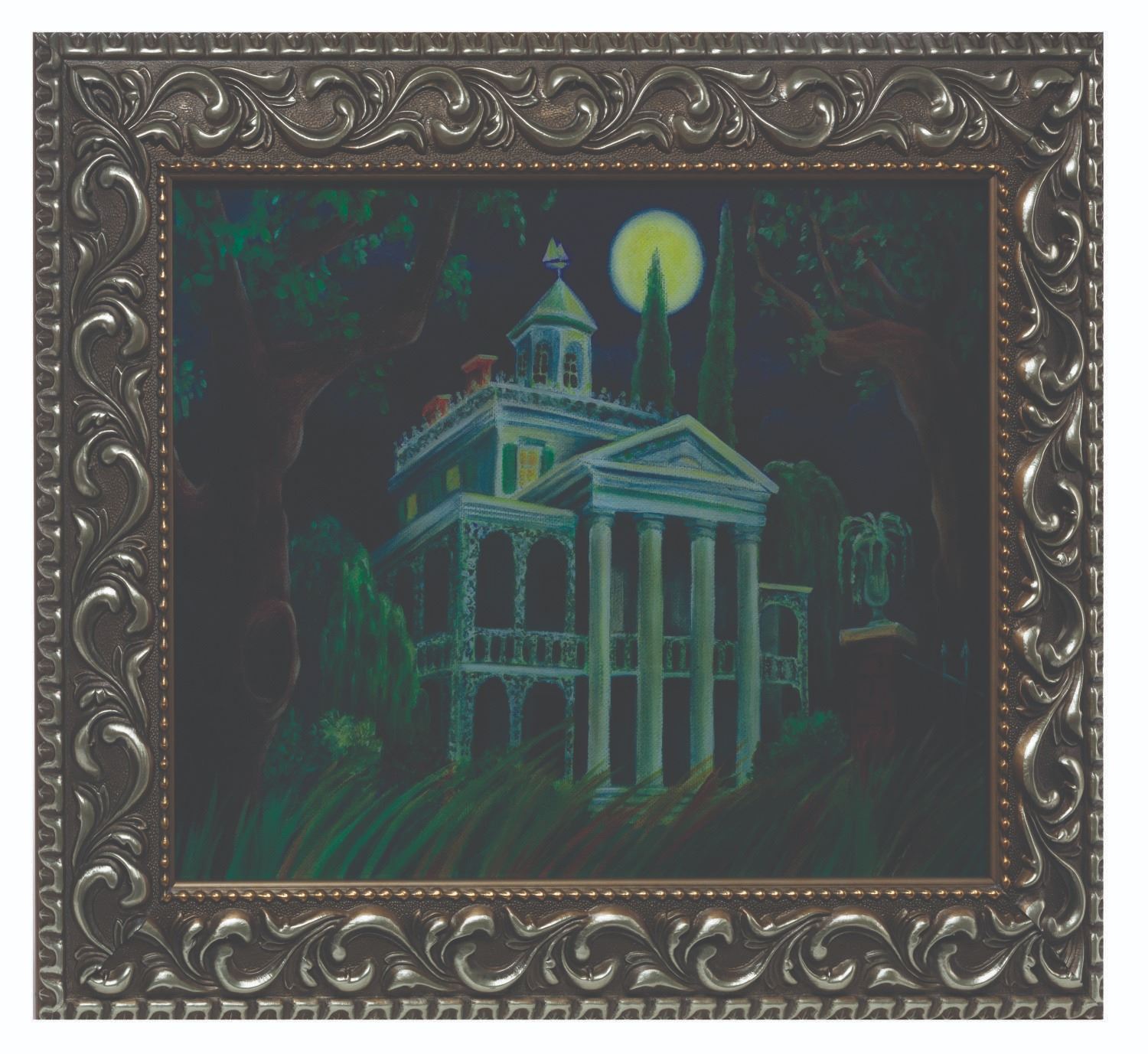 (Disney, 2002) A Haunted Mansion Holiday Lenticular changing portrait released at The Nightmare Before Christmas Haunted Mansion Holiday Event in October of 2002. The piece was produced in an edition of only 165 pieces. With an image size of 16" x 12" within its 21.25" x 17.25" frame, it displays in fine, as-new condition.