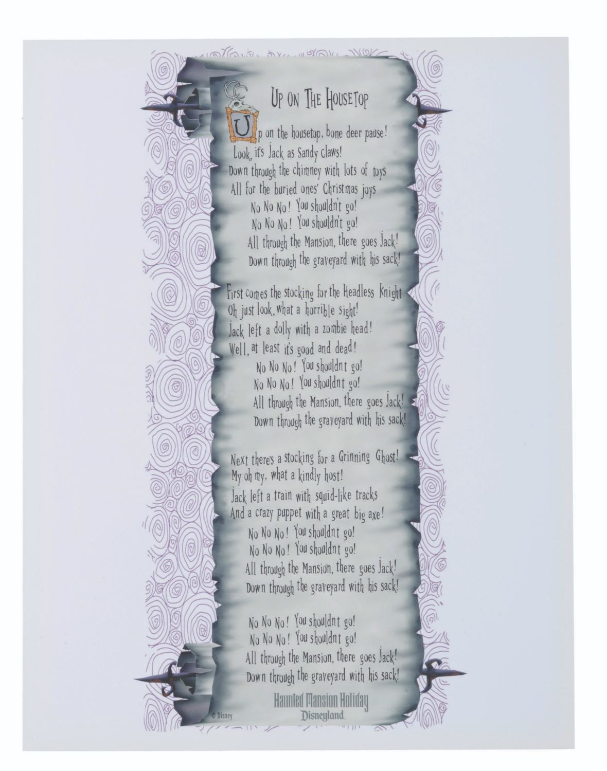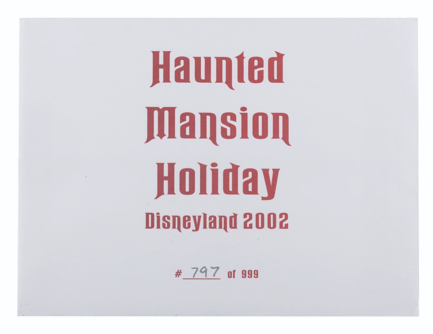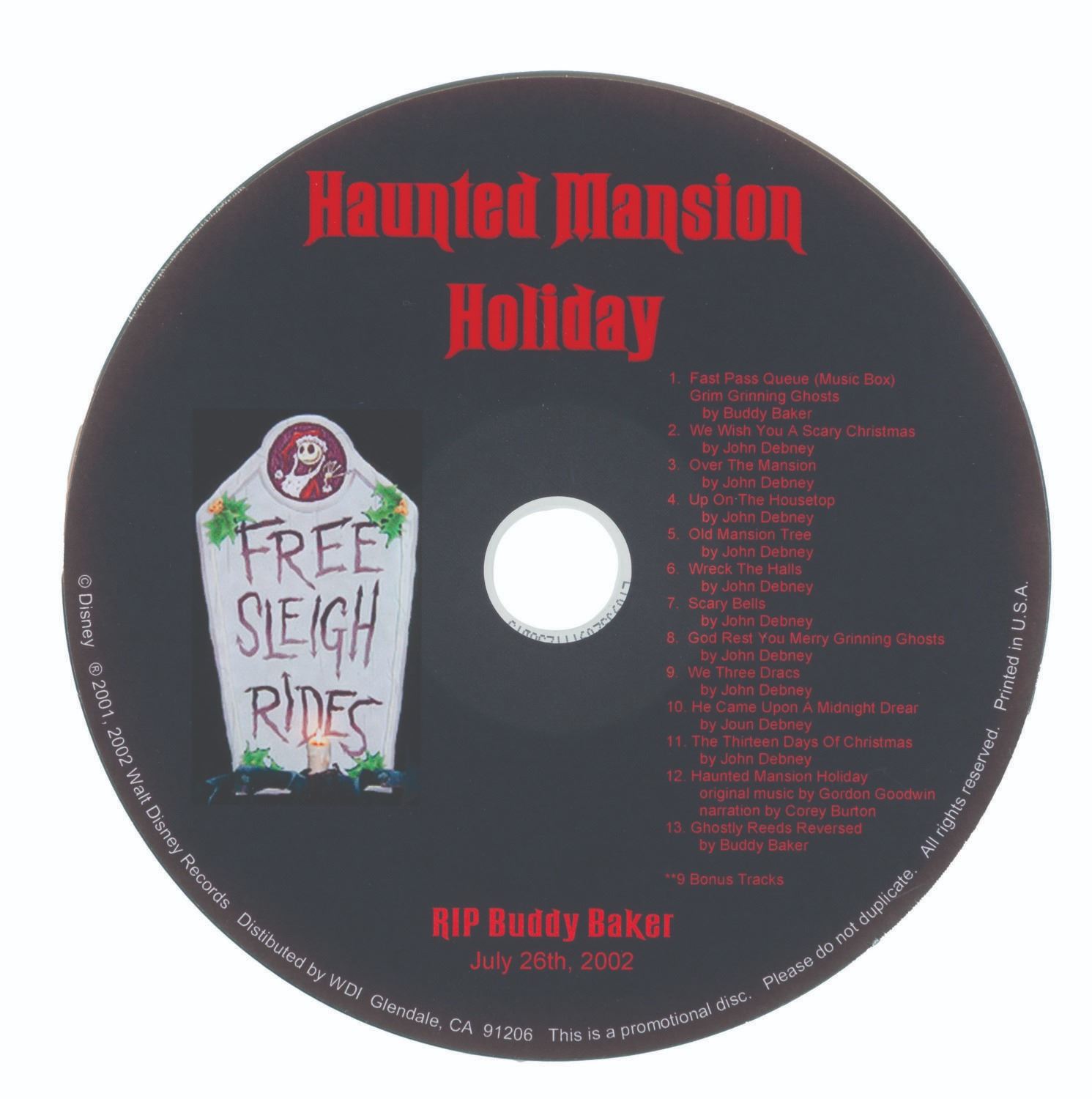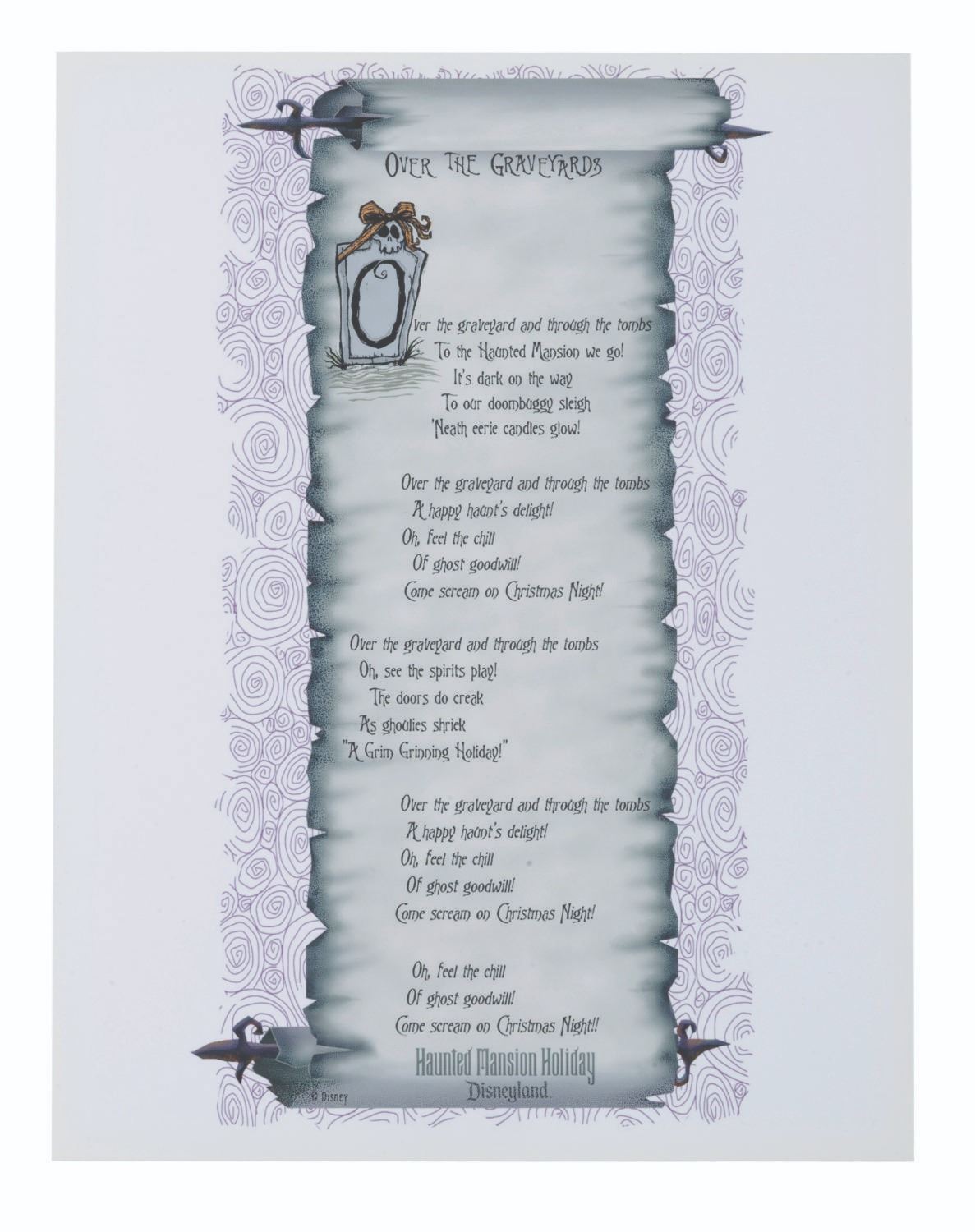 (Disneyland, 2002) A CD with 13 tracks from the Haunted Mansion featuring 10"Scarols” played during the Haunted Mansion Holiday, with five prints of lyrics. These were gifted to attendees of the opening event for the seasonal overlay in 2002. The CD and prints are in very good condition.