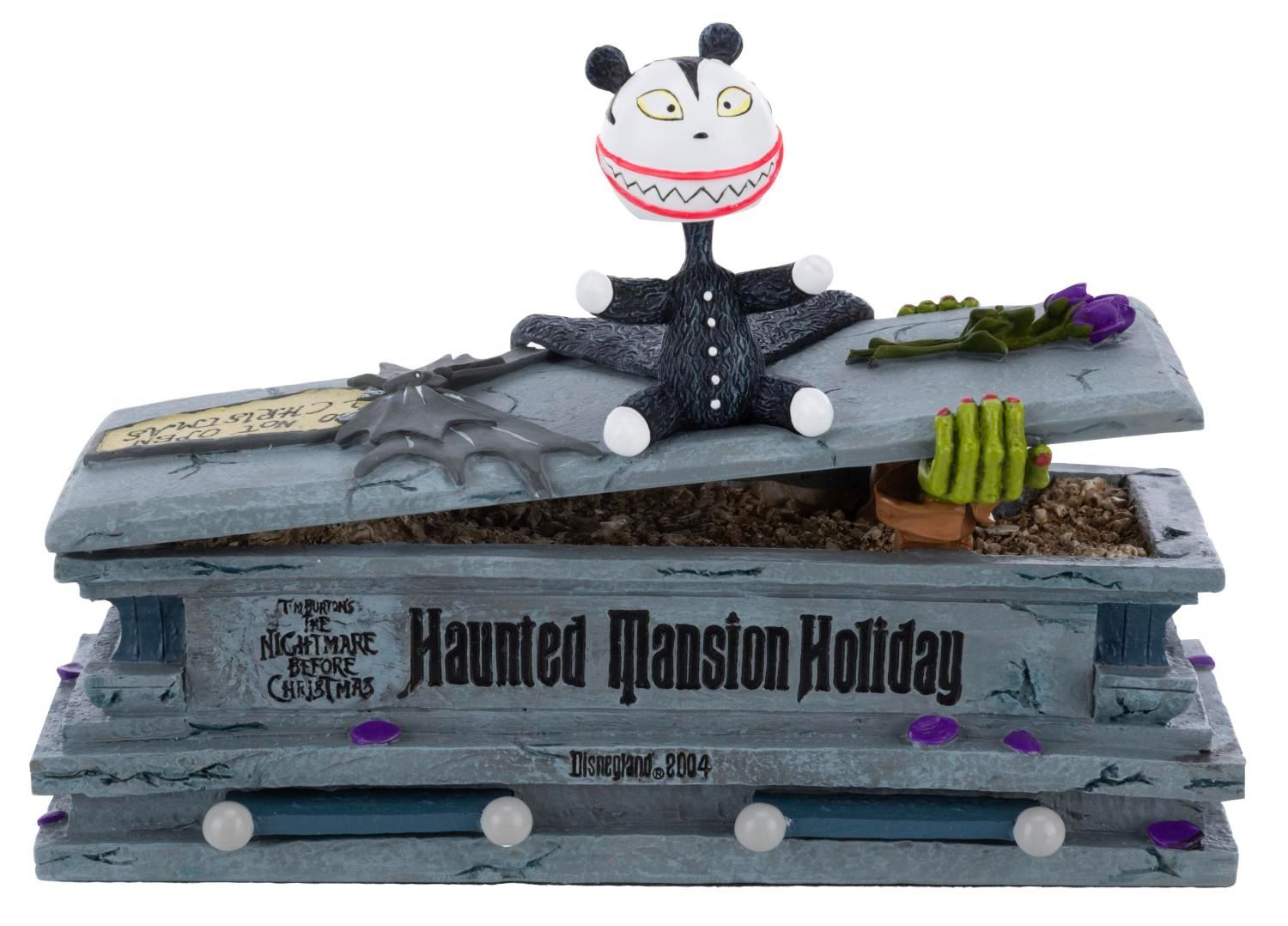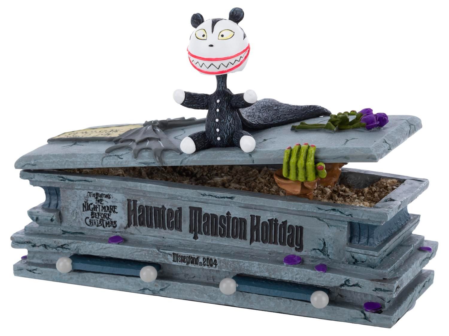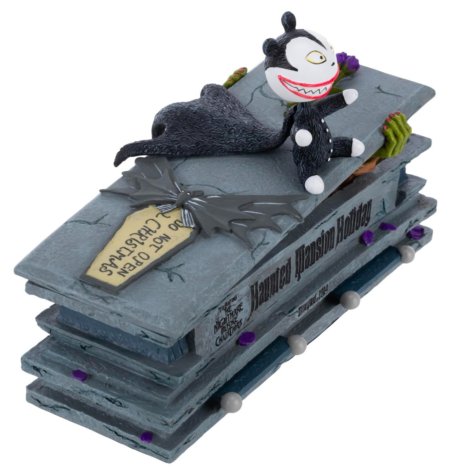 (Disneyland, 2004) A"Tim Burton's The Nightmare Before Christmas" Haunted Mansion Holiday Scary Teddy on a Coffin Bobble Head Figure. The resin piece was limited to an edition of 500 and is in fine, unused condition. It comes with a Certificate of Verification and the original box and packaging.