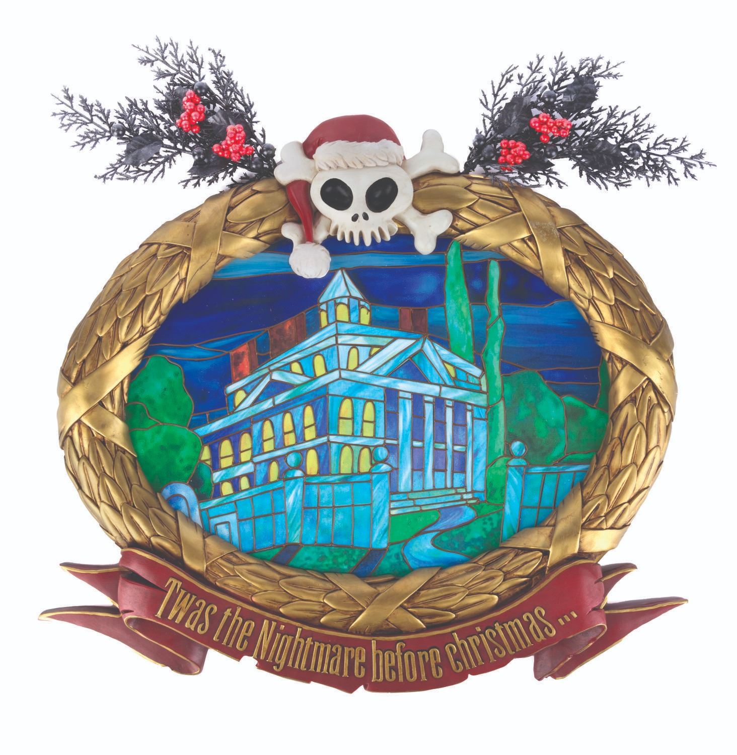 (Disneyland, 2012) A Haunted Mansion Holiday stained glass-style hanging plaque by Brian Sandahl, titled "Twas the Nightmare Before Christmas…" This piece was limited to an edition of 300. Measuring 20"x18" and 1.75" deep, the piece is in fine condition.