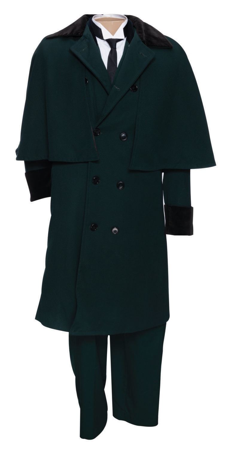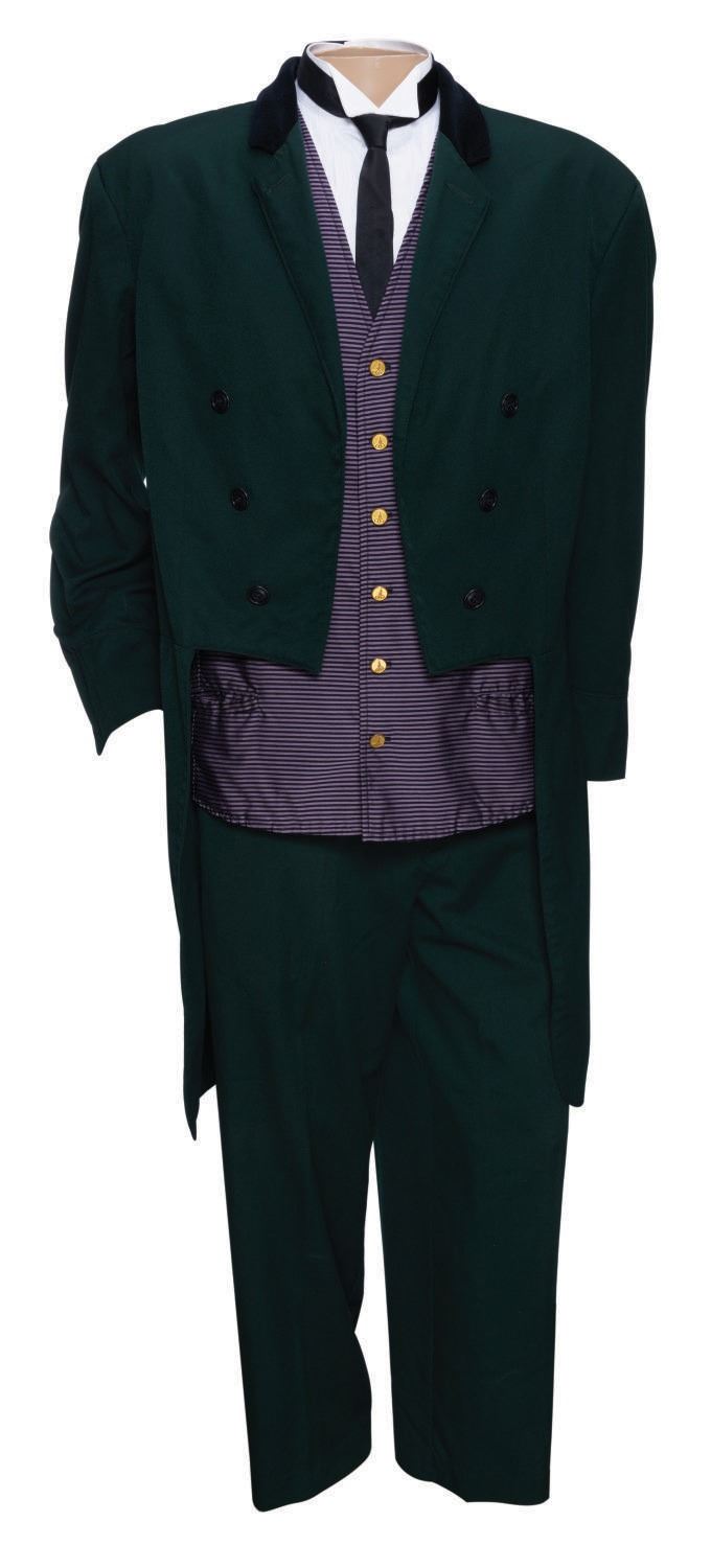 (Walt Disney World, 1990s) A Haunted Mansion costume from the Liberty Square in The Magic Kingdom at Walt Disney World. The costume comes with a shirt, tie, vest, pants, and coat. Measuring various sizes, each piece in very good park-used condition with wear from park-use, handling, and age.