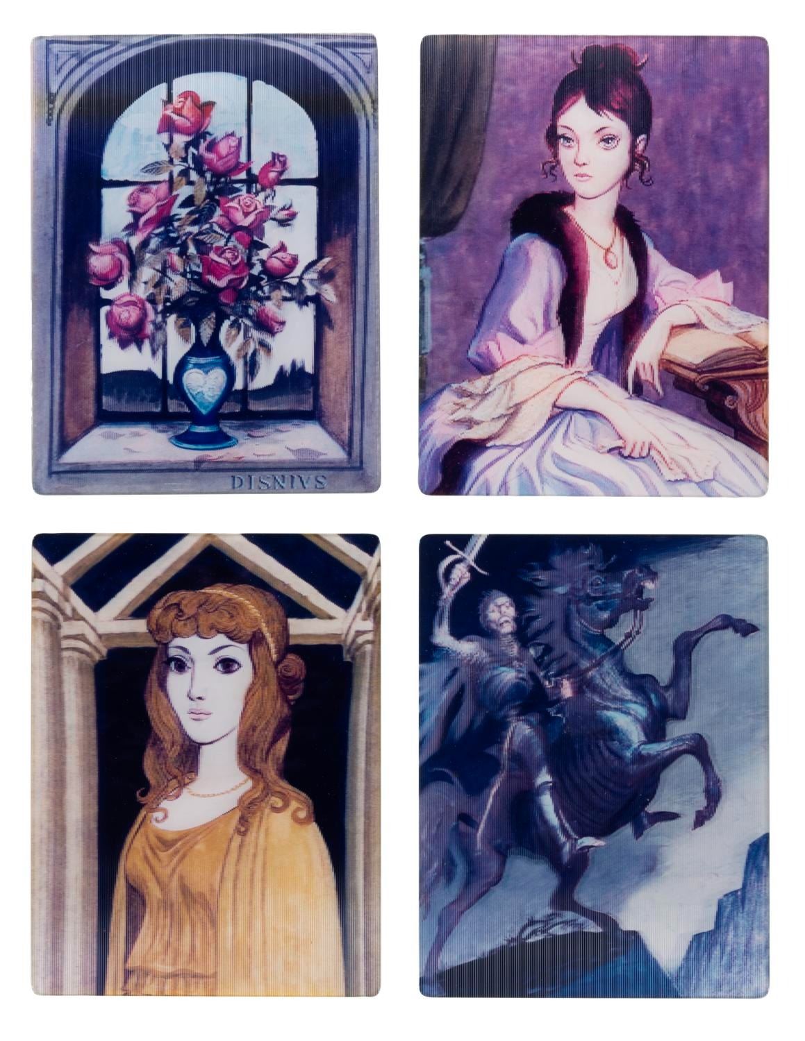(Disneyland, 1999) A collection of four lenticular cards of The Haunted Mansion’s changing portraits. This collection includes four of the five images created for the 30th anniversary. Measuring 3.75” x 5” each, the cards are in very good to good condition with light scratches and come with their original packaging.