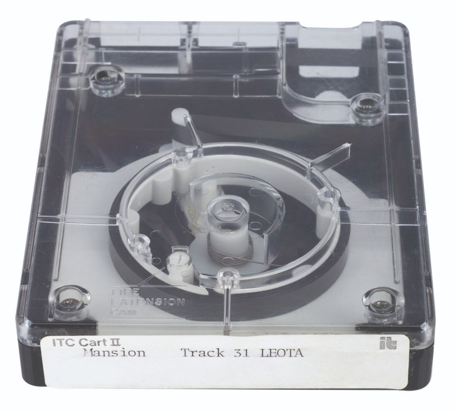 (Disneyland, 1970s-1990s) A rare Madame Leota audio cartridge from the Haunted Mansion. The audio for Madame Leota was performed by Eleanor Audley, who Disney fans may recognize as the voice of Lady Tremaine in “Cinderella” and Maleficent in “Sleeping Beauty.” The cartridge is labeled “ITC Cart II Mansion Track 31 LEOTA” and is believed to be from the attraction’s seance scene, in which Madame Leota calls to the spirits beyond. The 4" x 5" audio cartridge has not been tested, but it appears to be well-preserved and in very good functioning condition. A certificate of authenticity from Phil Sears Collectibles is included.