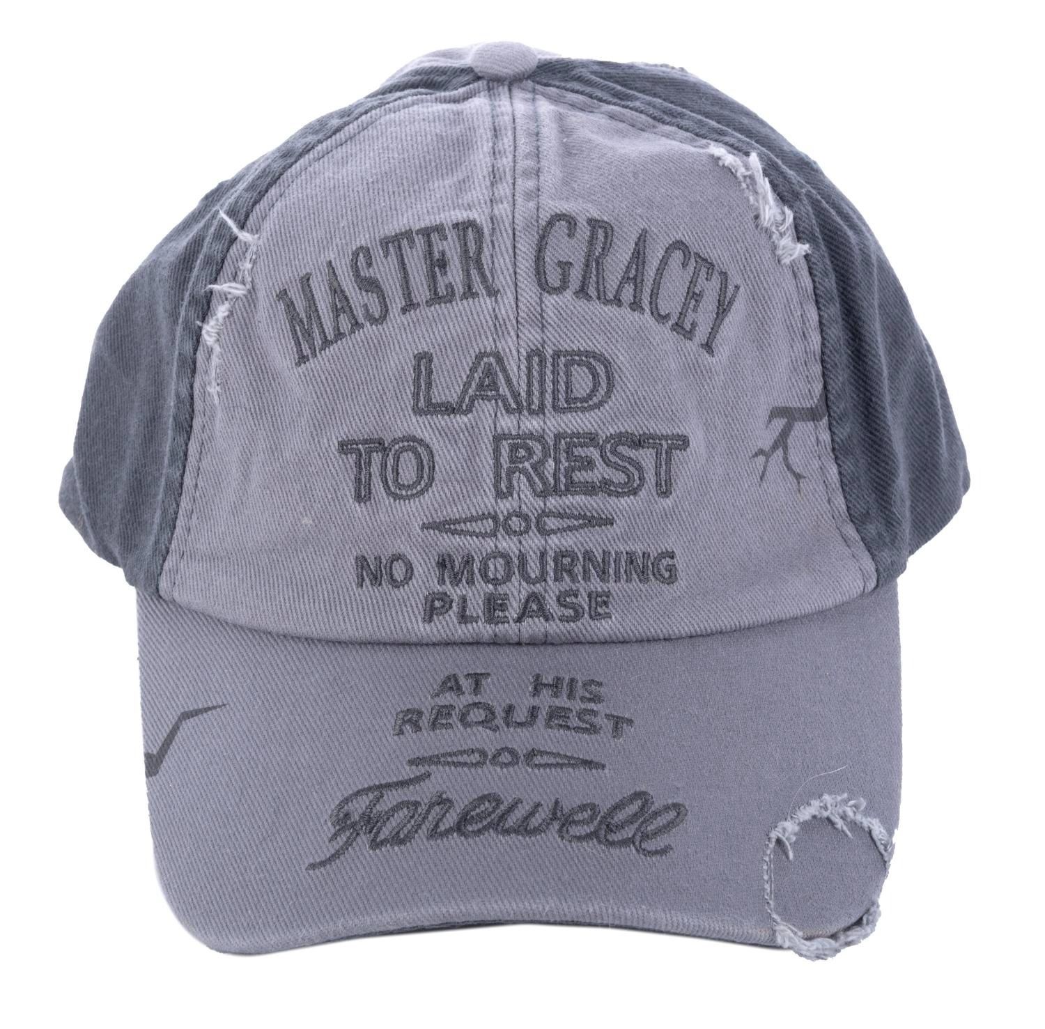 (Disney Parks, 2000s) An embroidered Haunted Mansion Baseball Cap featuring a Master Gracey epitaph. The cotton hat with an adjustable strap measures an Adult 57-61cm and is in fine condition with the original tags.