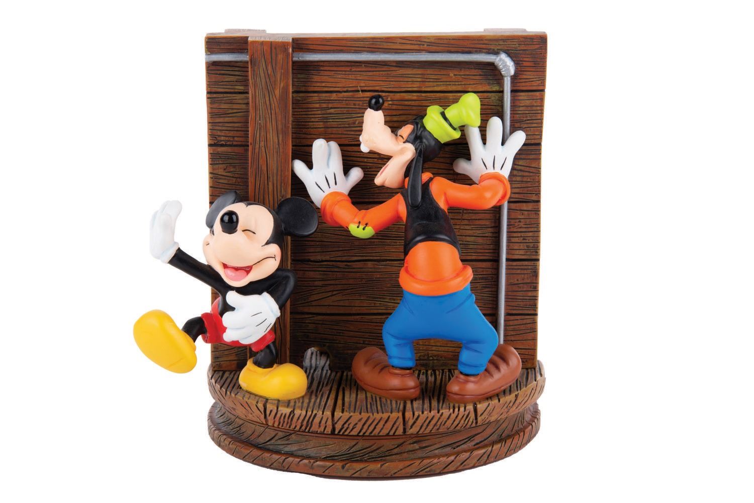 (Disney Parks, 2004-2005) A statue inspired by The Ghost Host Portrait in The Haunted Mansion at Disney Parks. The rotating scene features Donald Duck spooked by the playful antics of Goofy and Mickey. Measuring 6" tall and 6.5" at its widest diameter, the figure is in fine condition.