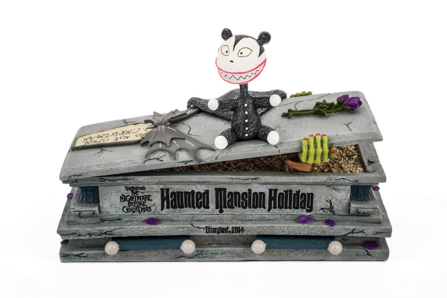 (Disneyland, 2004) A Nightmare Before Christmas Haunted Mansion Holiday Scary Teddy on Coffin Bobble Head Figure. The resin piece was limited to an edition of 500 and is in fine unused condition and comes with a Certificate of Verification, and the original box and packaging.