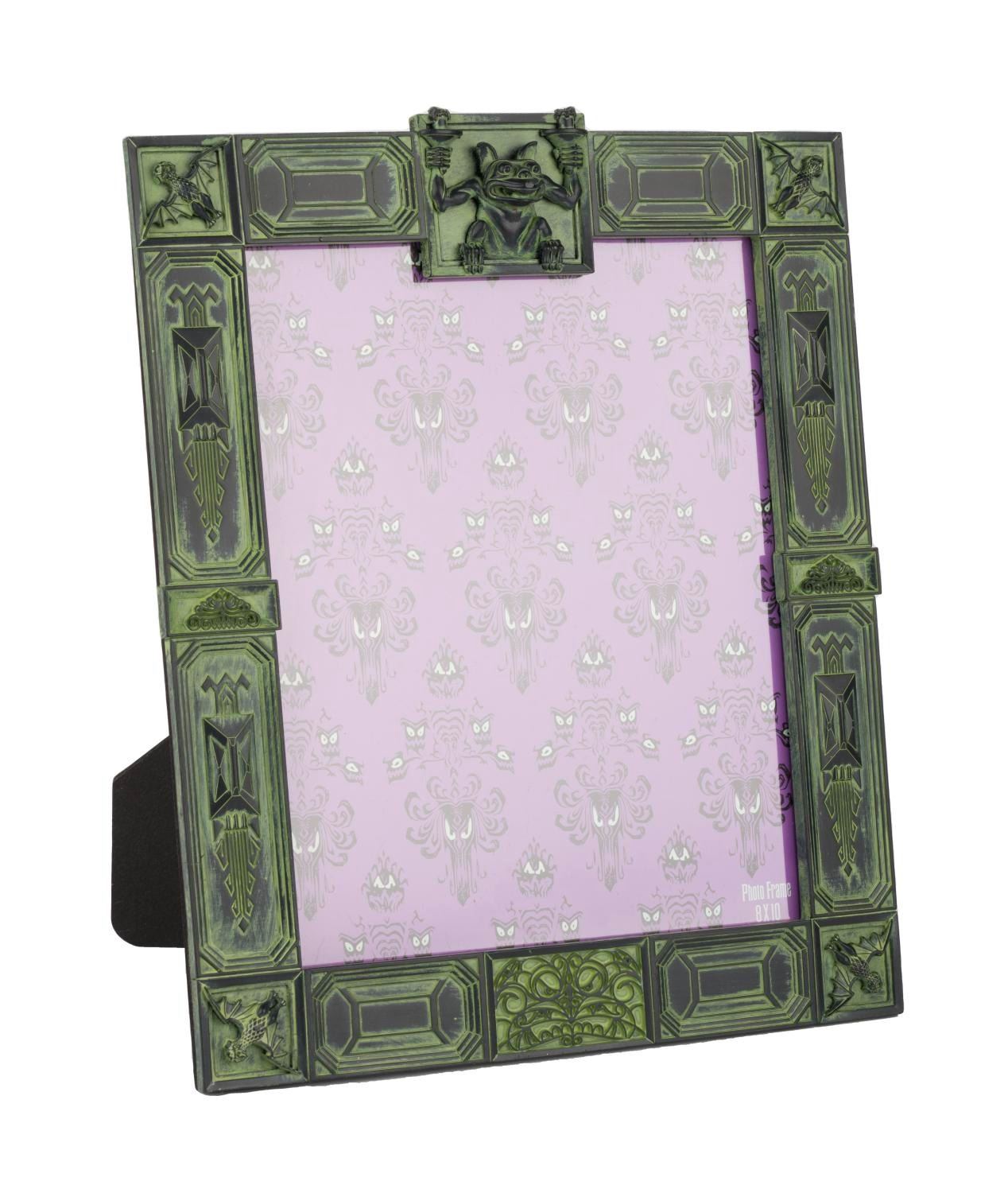 (Disney Parks, 2000s) A Haunted Mansion photo frame decorated with bats and gargoyles featured in the hallways of the popular attraction. Measuring 10.75" x 13" overall, with an 8" x 10" opening, the frame is in fine condition with original Disney Theme Park Merchandise labels attached.