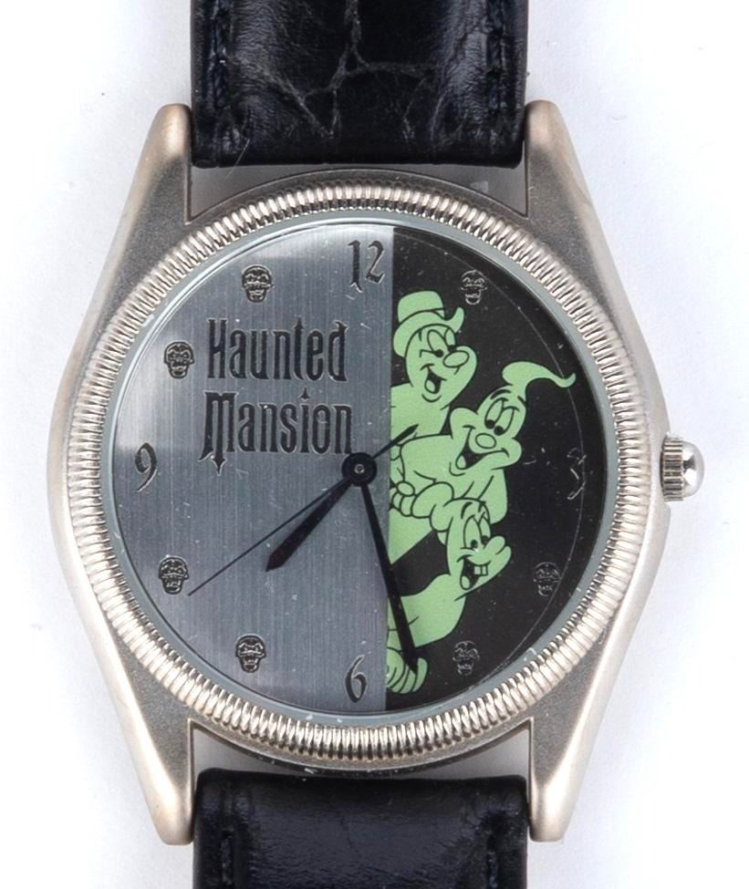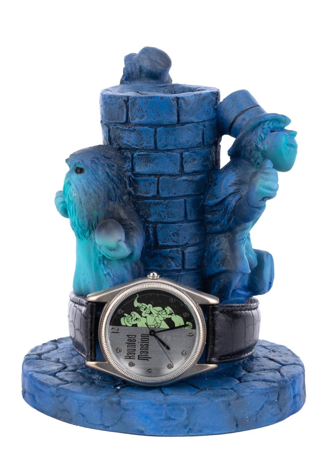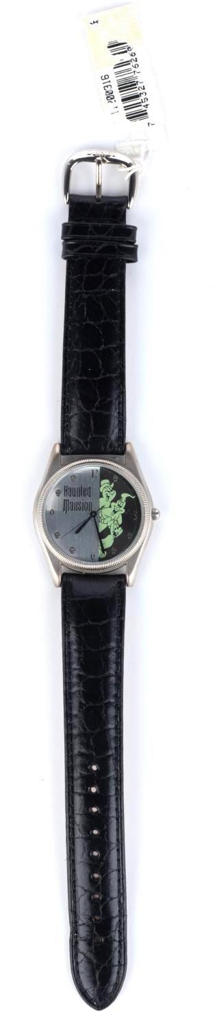 (Disney, 2000) A Haunted Mansion limited edition ghost watch with a Hitchhiking Ghost figural base. The 1.5" x 9" watch and 3.5" x 4.5" high figure are both numbered 392/2000 and are in fine condition.