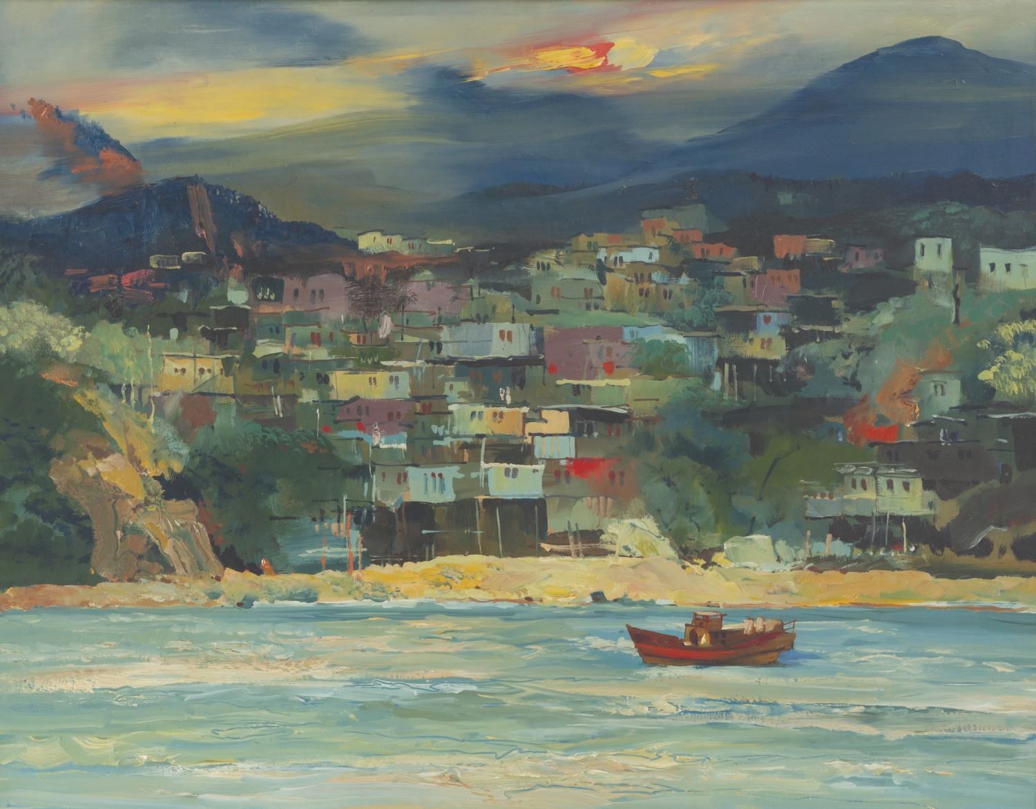 (Ryman, 1983) A beautiful acrylic painting titled "Cliff Dwellers of Aberdine Harbor, Hong Kong." Ryman was a world traveler and would often paint scenes of the places he visited. The painting can be found on page 93 of "A Brush With Disney: An Artists Journey told through the words and works of Herbert Dickens Ryman" (Camphor Tree Publishers,2000) and was on exhibition at the Disneyland Gallery in late 2000. The painting measures 27"x22" in a 38"x32" frame.