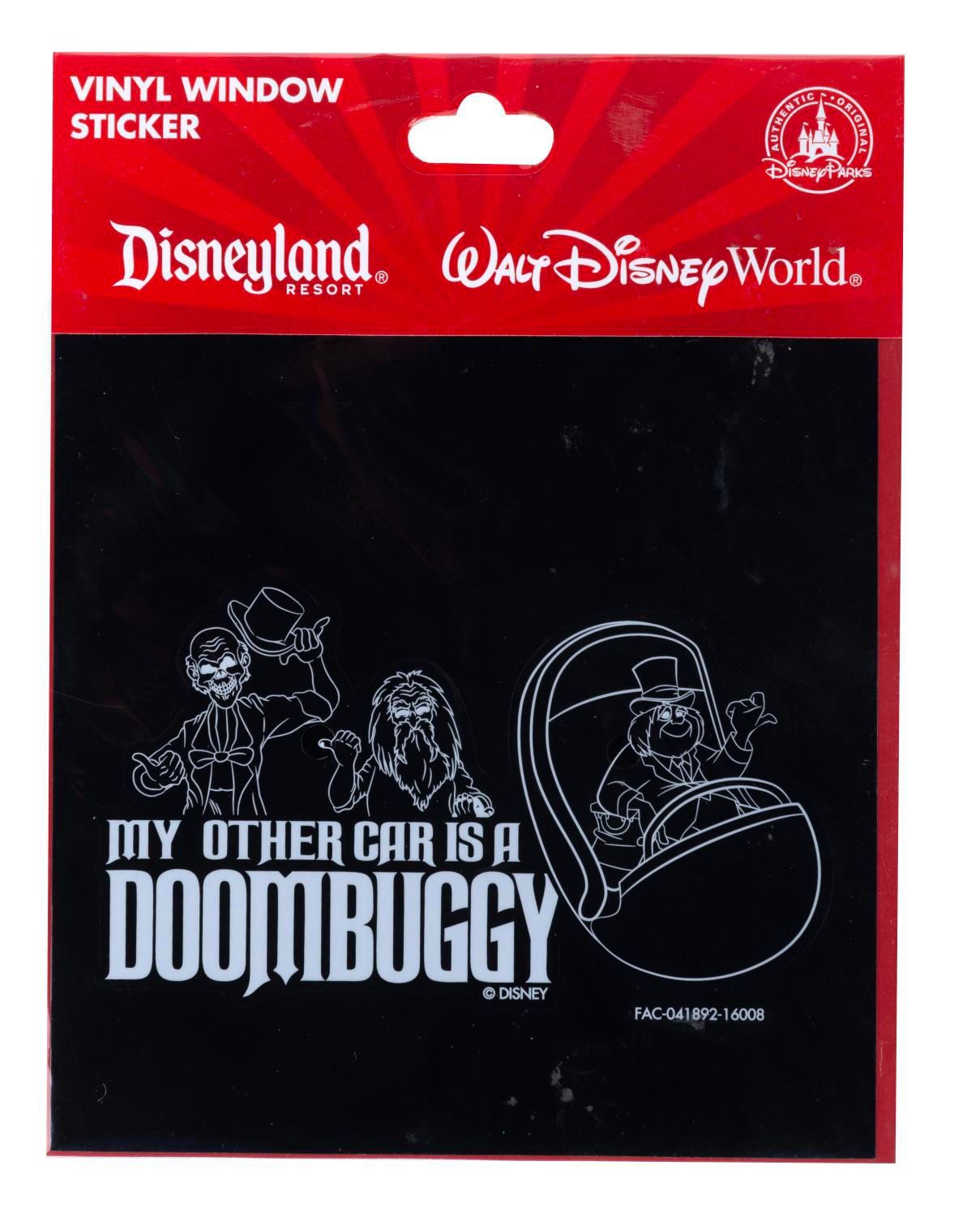 (Disney Parks, 2000s) A Disney Parks Haunted Mansion "My Other Car is a Doombuggy" Vinyl Window Sticker. The sticker was offered throughout Disney Parks worldwide, features the Hitchhiking Ghosts and a Doombuggy from the Haunted Mansion, and is in fine unused condition in original package.