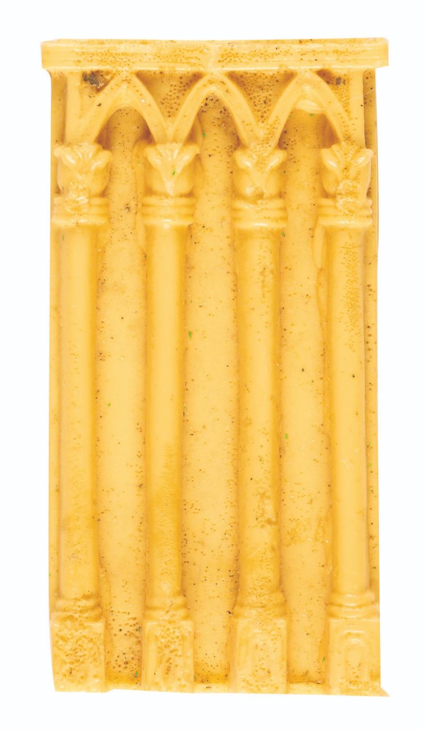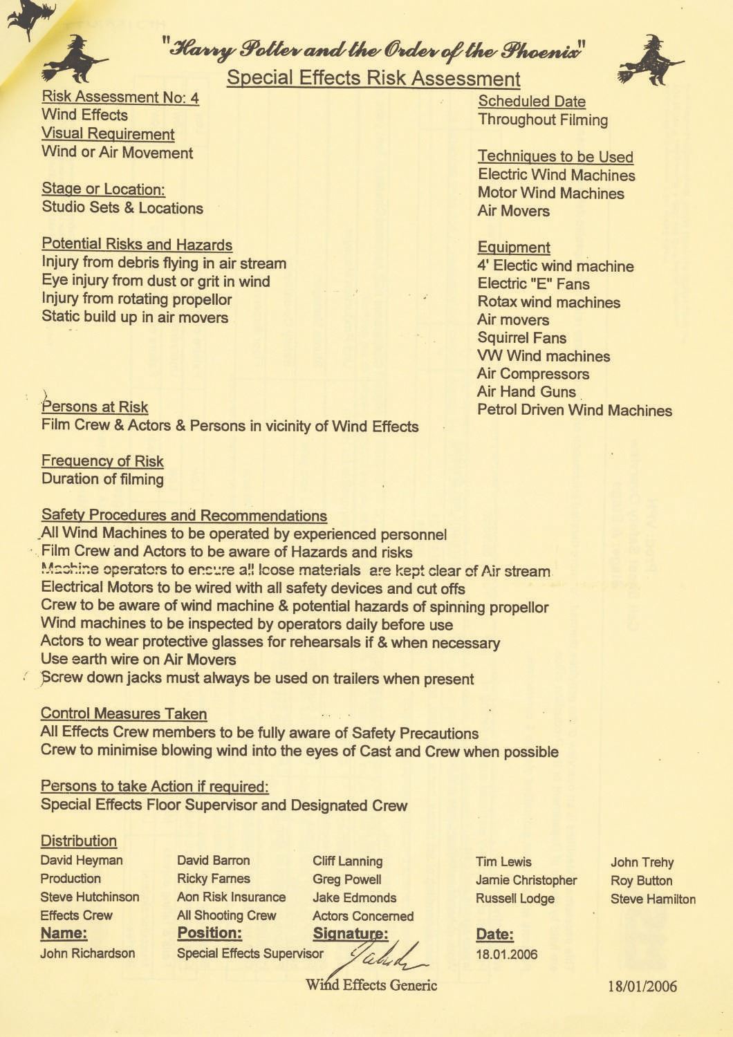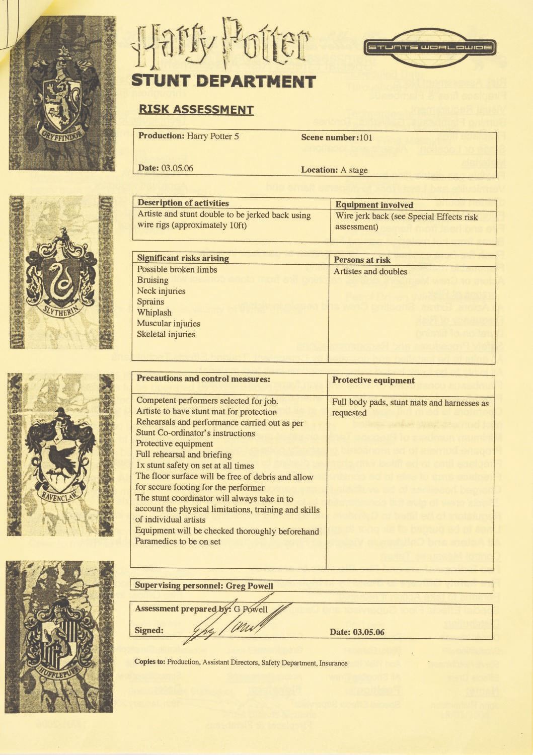 (Warner Bros., 2005) A miniature Hogwarts wall section casting and a seven-page call sheet from production of "Harry Potter and the Order of the Phoenix.” Dated May 3rd, 2006, the second unit call sheet is for scenes set in the Great Hall, Dumbledore’s Office, and an exterior of Hogsmeade. Measuring 4” x 2” x 0.5” thick, the casting is in very good condition with handling wear from production, while the 8.25” x 11.75” call sheet is in good production-used condition with edge wear and creasing from production use.