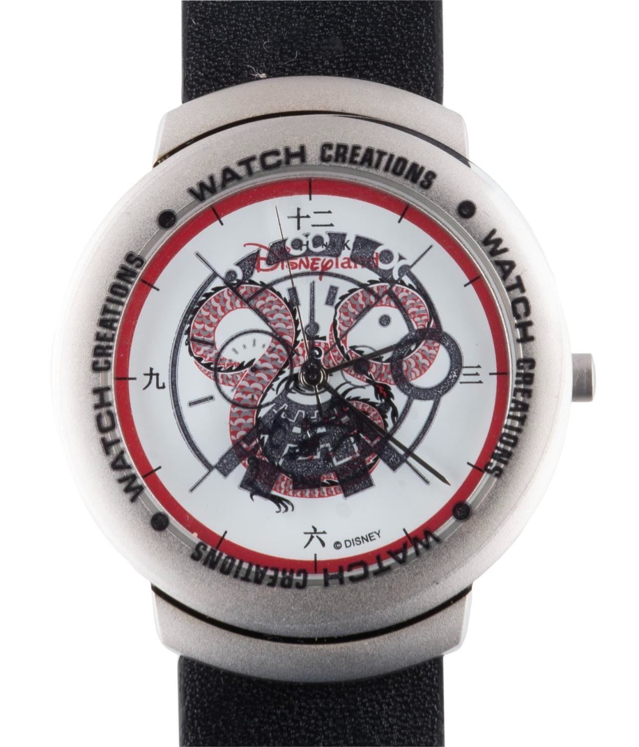 (Hong Kong Disneyland, 2005) A Hong Kong Disneyland Cast exclusive watch of a dragon forming Mickey ears, released in a limited edition of only 300. The men's style watch is in fine, unused condition, and may require a battery and service to function.