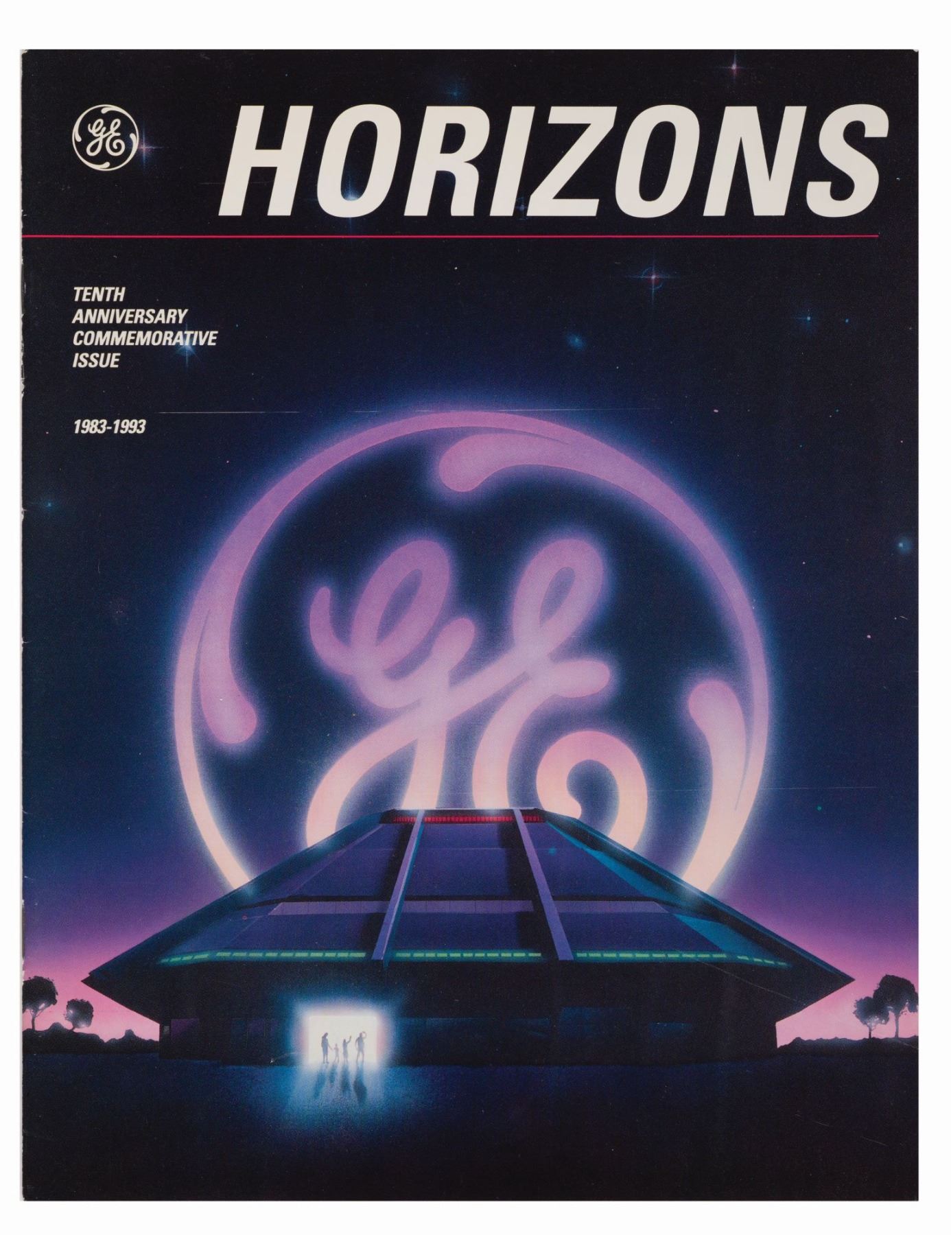 (EPCOT, 1993) A magazine celebrating the 10th anniversary of General Electric's Horizons at EPCOT. This 18-page souvenir pictorial offers a concise retrospective with colorful images. Measuring 8.5" x 11", this piece is in very good condition with minor wear and a few faint creases along its spine.