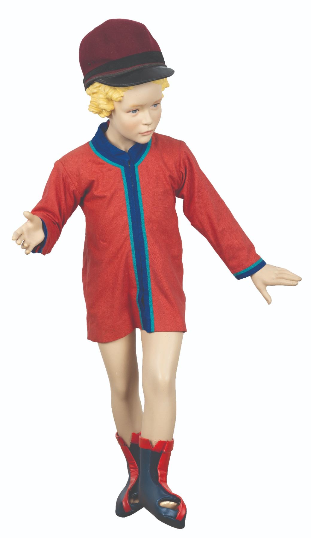 (Epcot, c.1983) A costume created for "Figure 24" of Horizons at Epcot Center. There were a total of 54 Audio-Animatronics figures in the Horizons show and this costume was specially prepared for a specific child figure in the Undersea Classroom of "Tomorrow's Horizons."