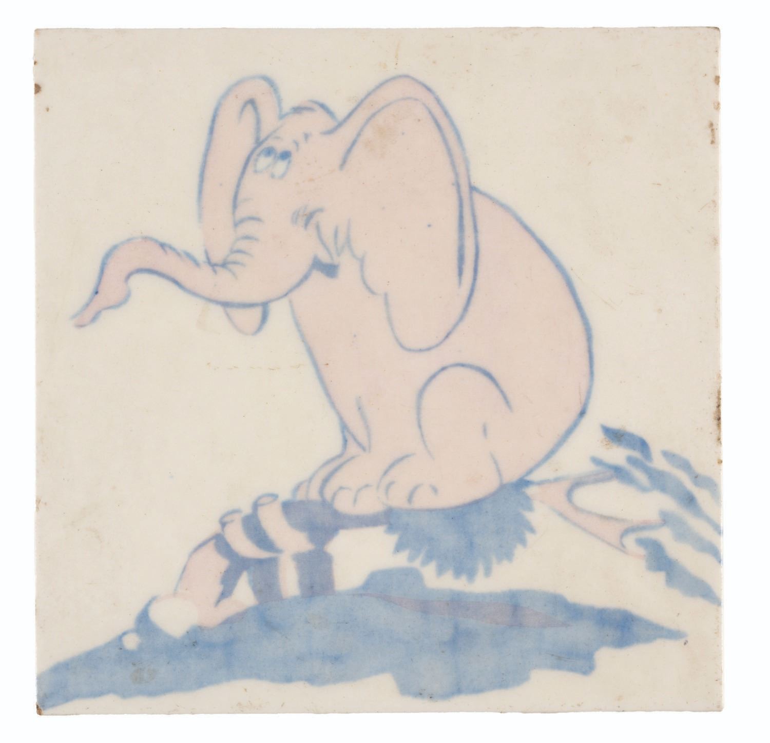 (Clampett, 1960s-80s) A one-of-a-kind prototype for a “Horton Hatches the Egg” ceramic tile featuring Bob Clampett’s version of the Dr. Seuss character. Measuring 6” x 6”, the tile displays in good condition with scratches, scuffs, stains, and discoloration from age.