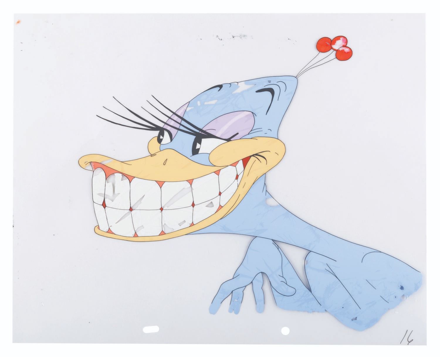 (Schlesinger, 1942) An original hand-painted production cel of Mayzie from “Horton Hatches the Egg.” With an image size of 8.75” x 10.5” on a 10” x 12.5” cel, the piece displays in fair condition with heavy paint loss, paint lifting, scratches, wear, and pinholes from production use.