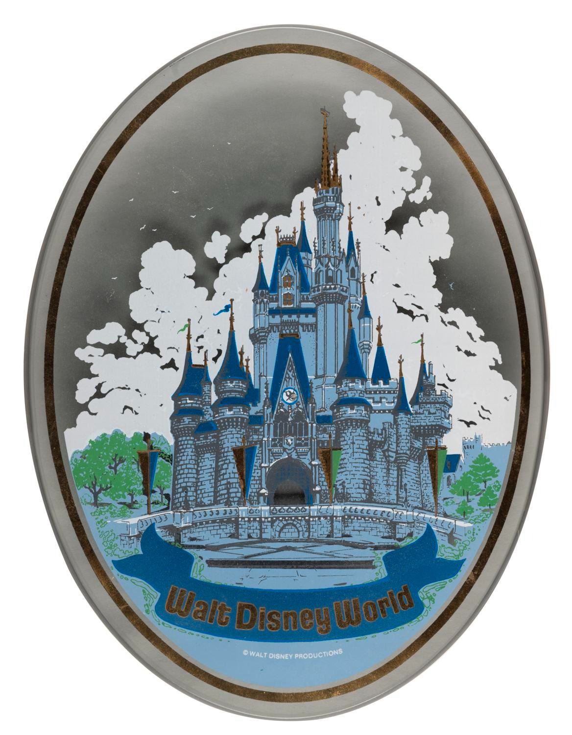 (Houze Art, 1980s) A decorative smoke glass dish featuring Cinderella Castle at the Magic Kingdom. Measuring 8.5" x 6.25", the dish is in good condition with light scuffs and wear from age.