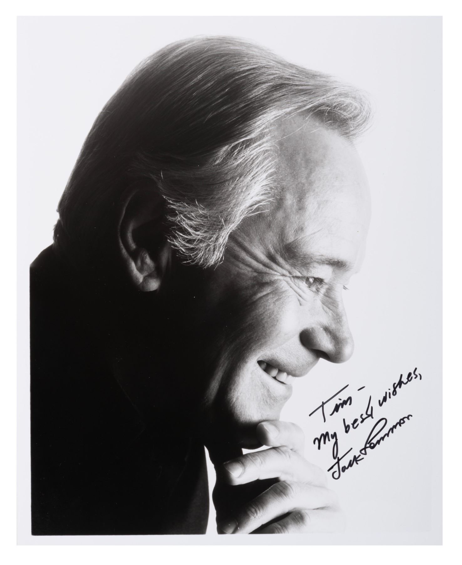 (Lemmon, 1990s) A photo of actor Jack Lemmon, signed with a dedication. Measuring 8" x 10" the autographed photo is in fine condition.