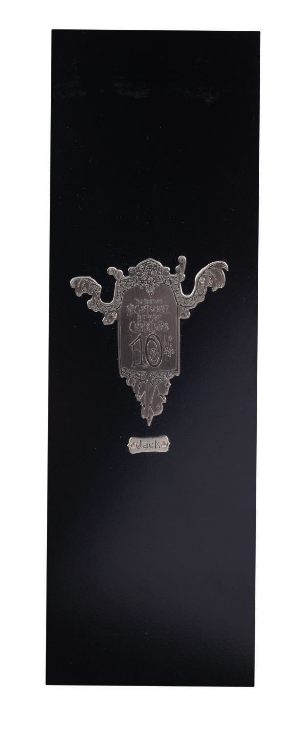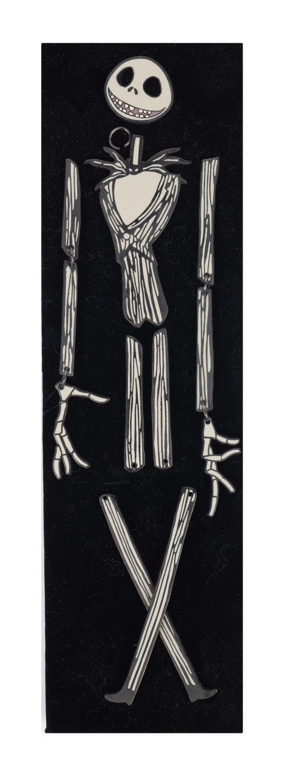(Disney Catalog, 2003) A limited edition Jack Skellington Puzzle Pin figure, commemorating the 10th anniversary of "The Nightmare Before Christmas." The articulated enamel (8) pin set was released exclusively through The Disney Catalog in an edition of 2,500. Measuring approximately 1" in diameter to a length of 3", each pin is in fine as-new condition within an original 11.25"x3.75" and 2" deep magnetically sealed wooden box with commemorative plaque.