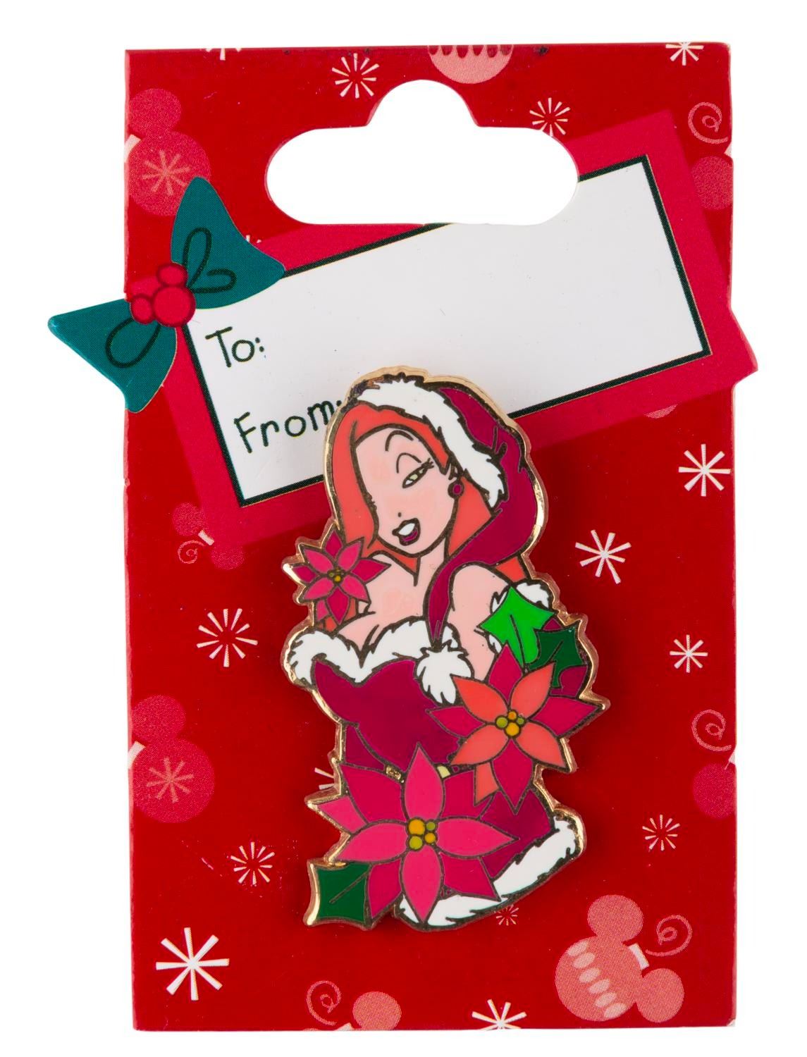 (Disneyland, 2006) A Christmas pin of Jessica Rabbit with Santa hat and poinsettas. The pin is in fine condition on the original "gift tag" card.