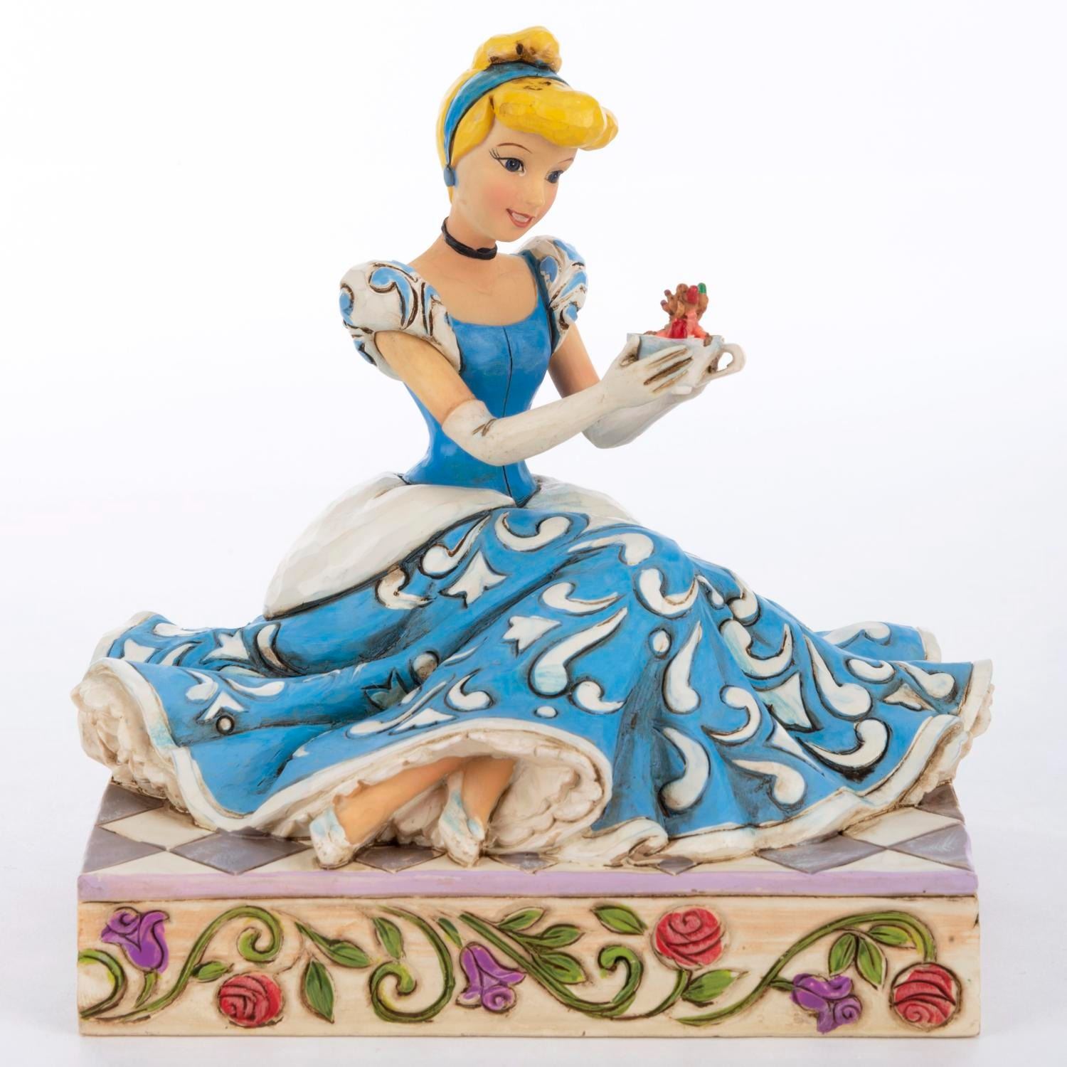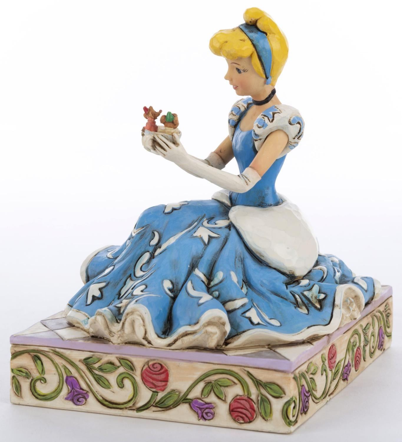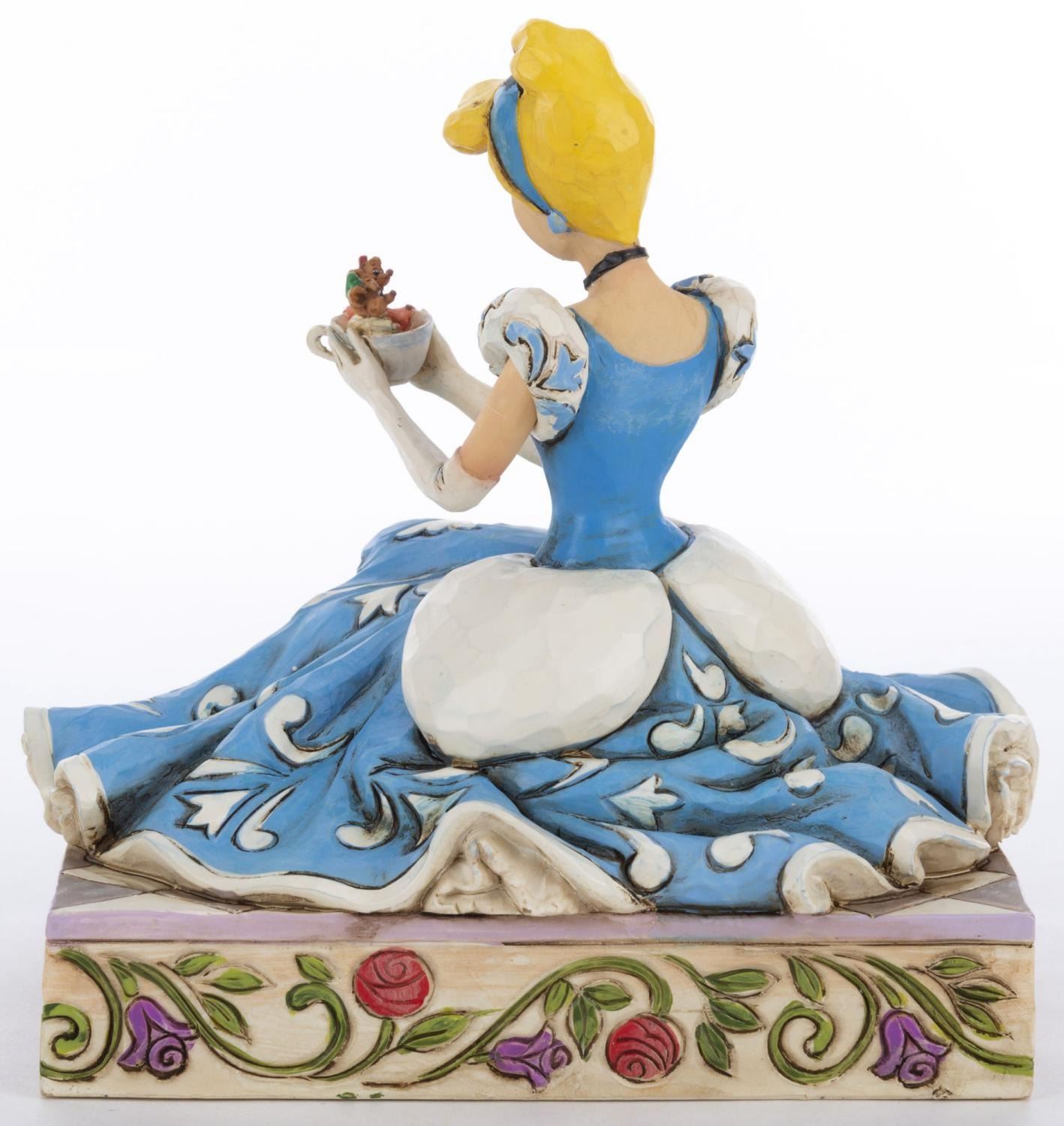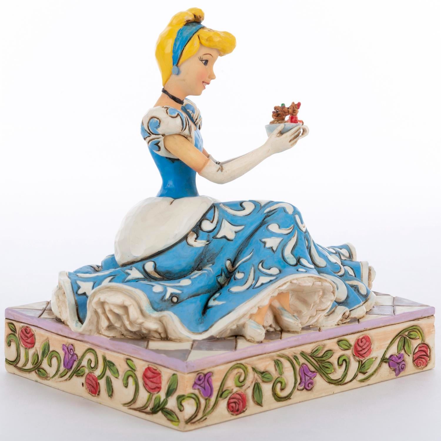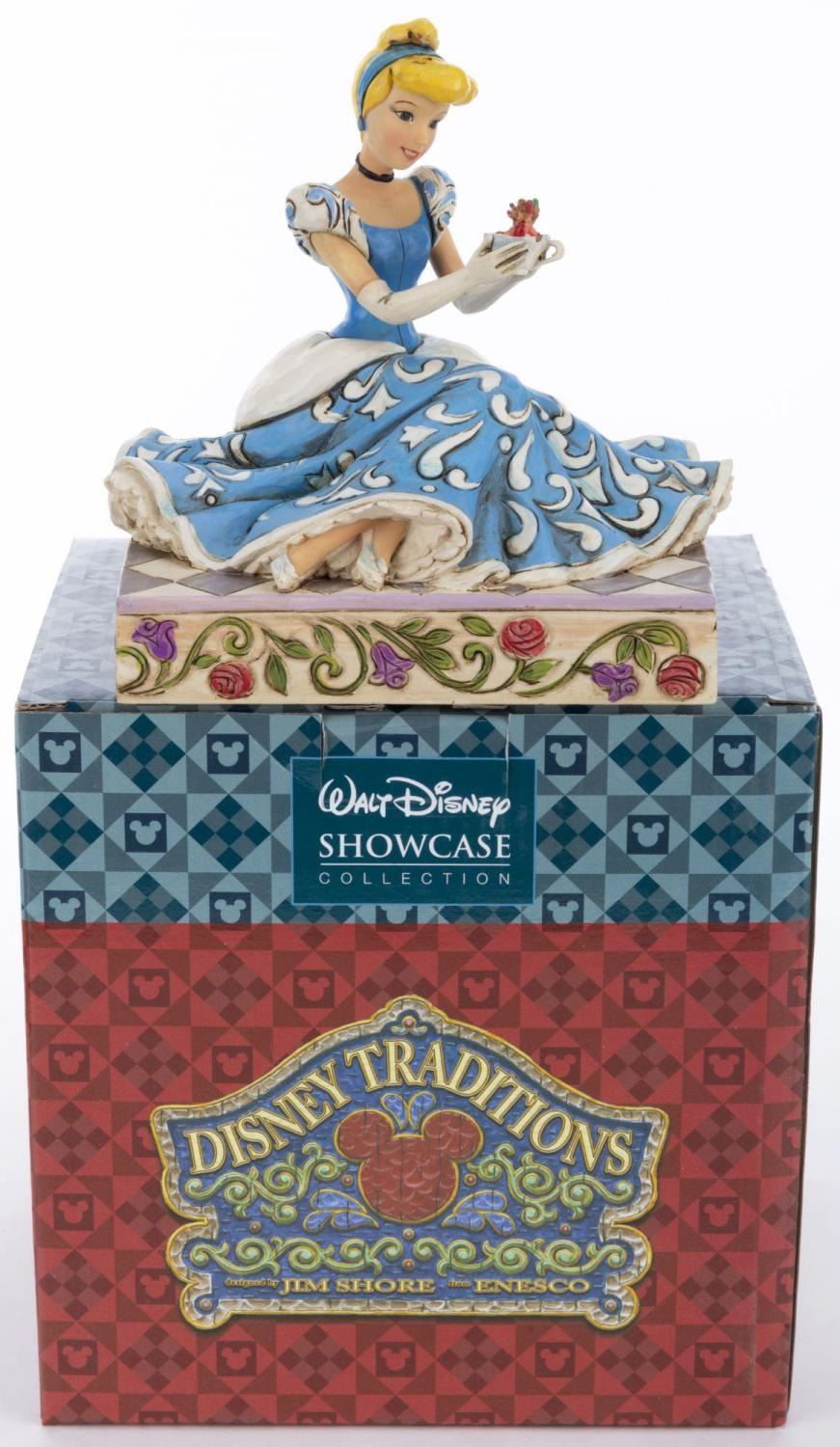 (Enesco, 2013) A Disney Traditions figurine of Cinderella with Gus and Jaq titled “Caring and Courageous.” The stone resin figurine was designed by Jim Shore and released as part of the Disney Showcase Collection. Measuring 5.5" x 4.25" and 5.5" tall, the figurine is in fine condition and comes with the original box.