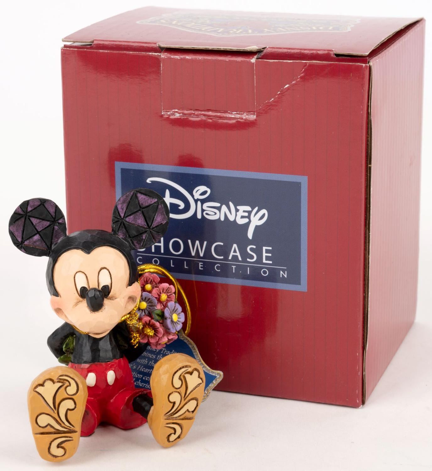 (Enesco, 2016) A Disney Traditions miniature figurine of Mickey Mouse designed by Jim Shore and released for Valentine's Day. Measuring 2.25" x 2" and 2.75" tall, the figurine is in fine condition and comes with the original 3.75" x 3.25" x 4.25" box.