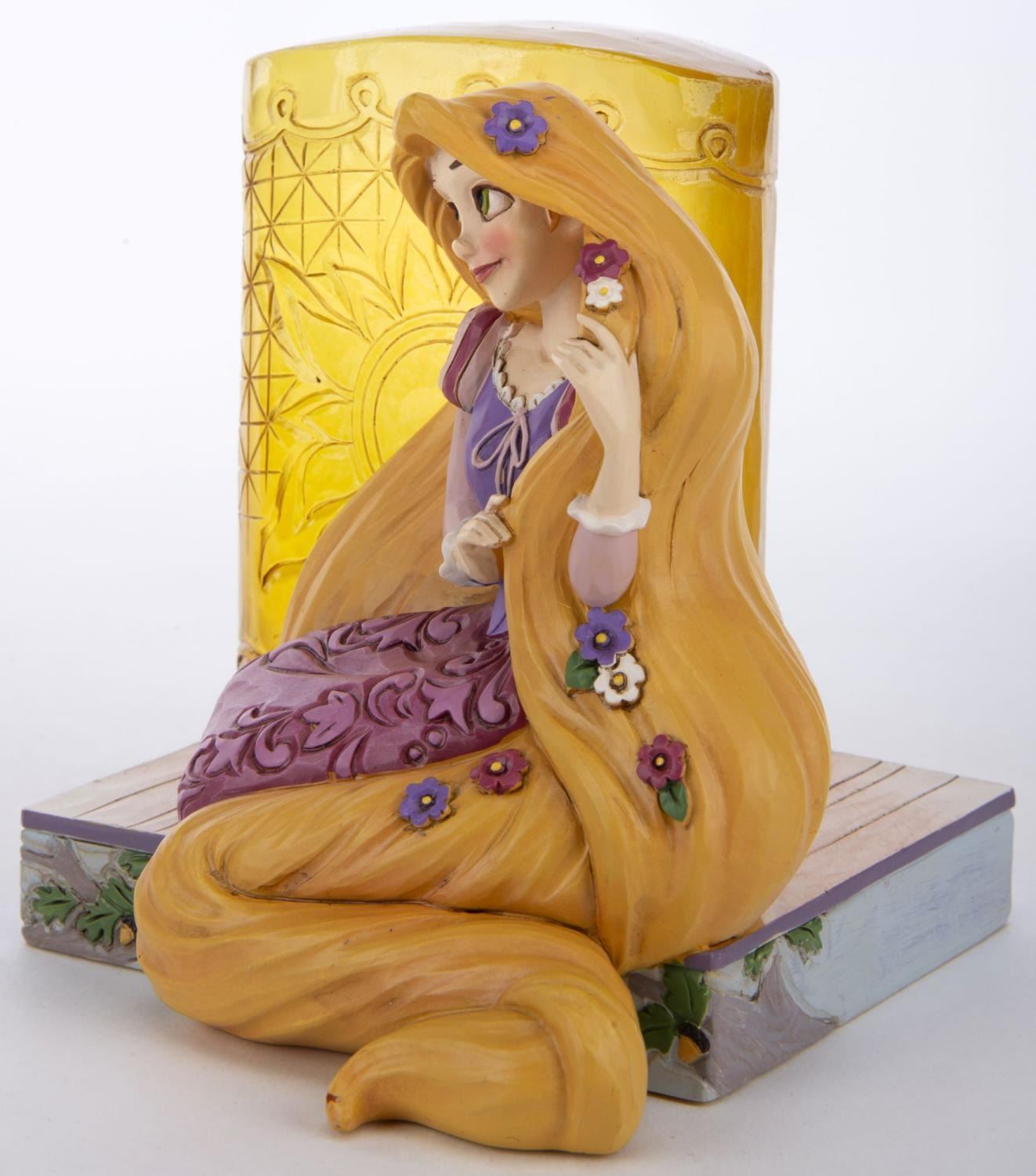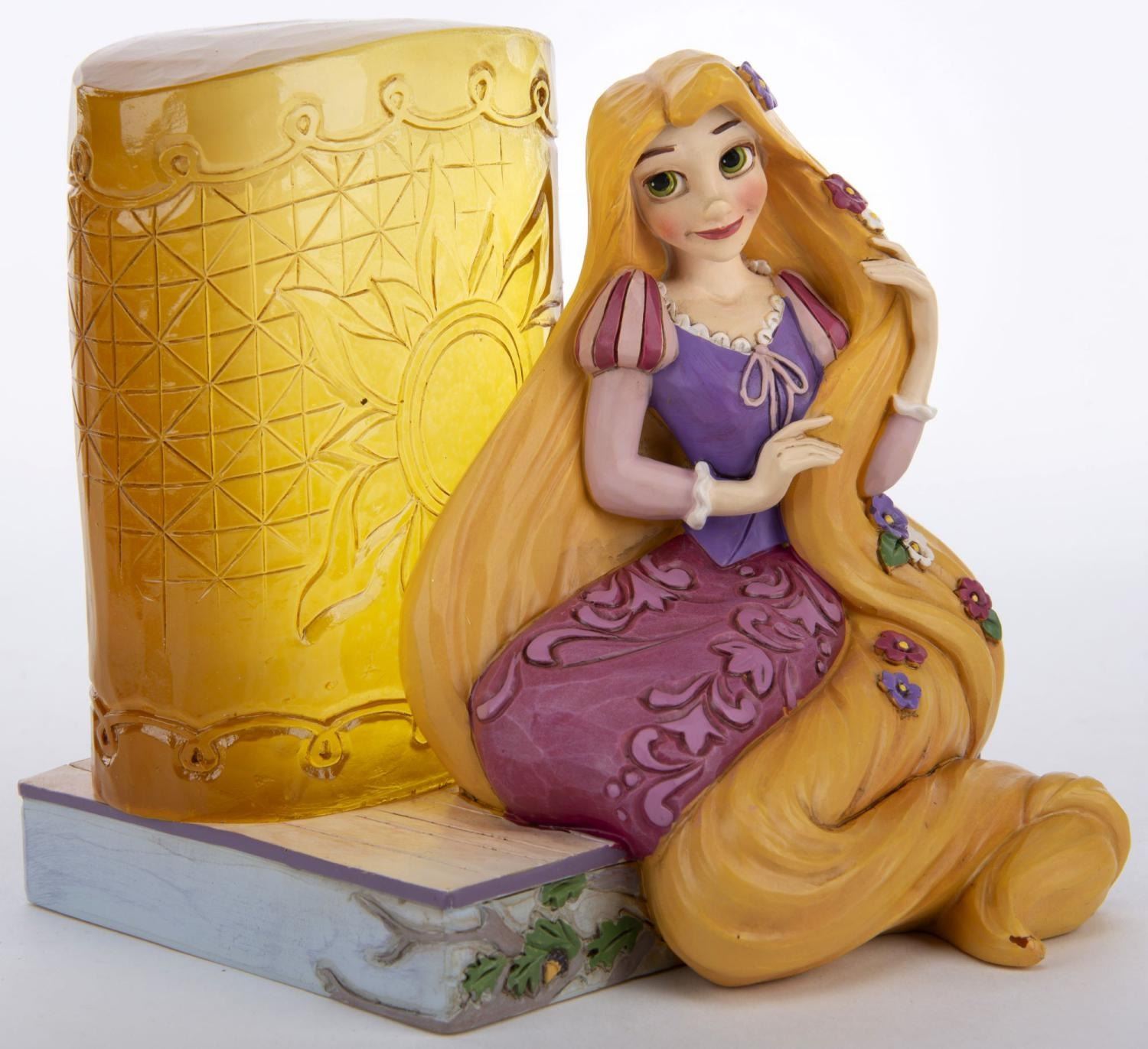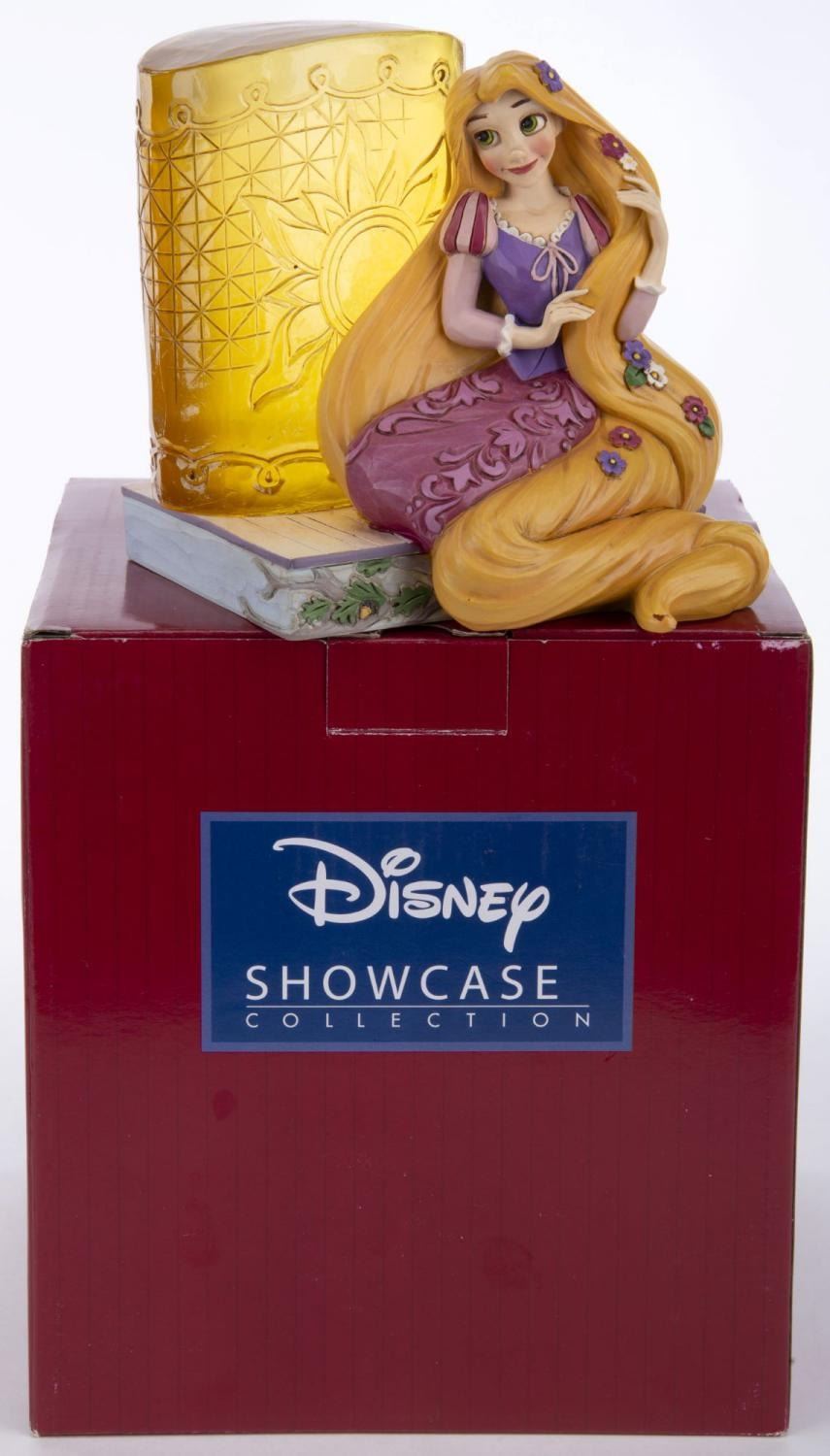 (Enesco, 2022) A Disney Traditions figurine of Rapunzel from “Tangled.” The resin figurine titled “A New Dream” was designed by Jim Shore as part of the Disney Showcase Collection. The 4.5” x 4.75” and 4.75” tall figurine is in fine condition and comes with the original box.