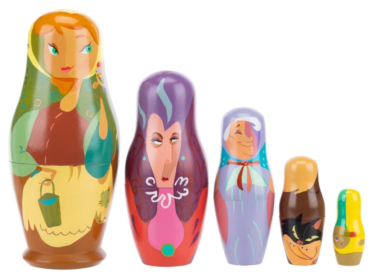 (Walt Disney Gallery, 2000s) A five-piece hand-painted "Cinderella" nesting doll set designed by Jody Daily and released in a limited edition of 2,500 pieces. Measuring 6" tall, the set is in very good condition with light edge wear.