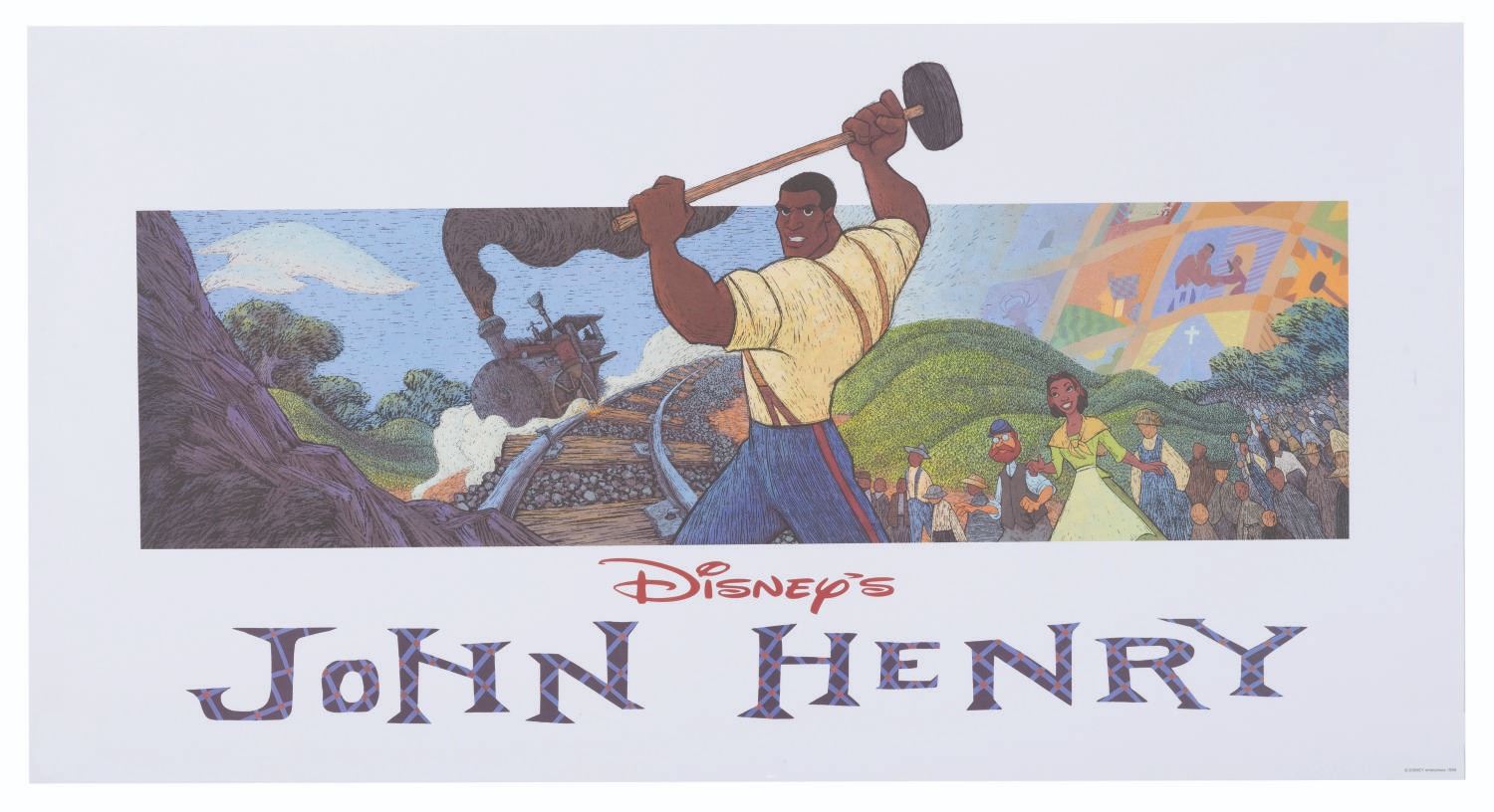 (Disney, 2000) A lithograph print for Disney's highly acclaimed short film "John Henry." The Grammy-winning film based on African American folk hero John Henry, has been featured on DVDs such as Disney's American Legends and Walt Disney Animation Studios Short Films Collection. Measuring 20" x 37.25", the poster is in fine condition.