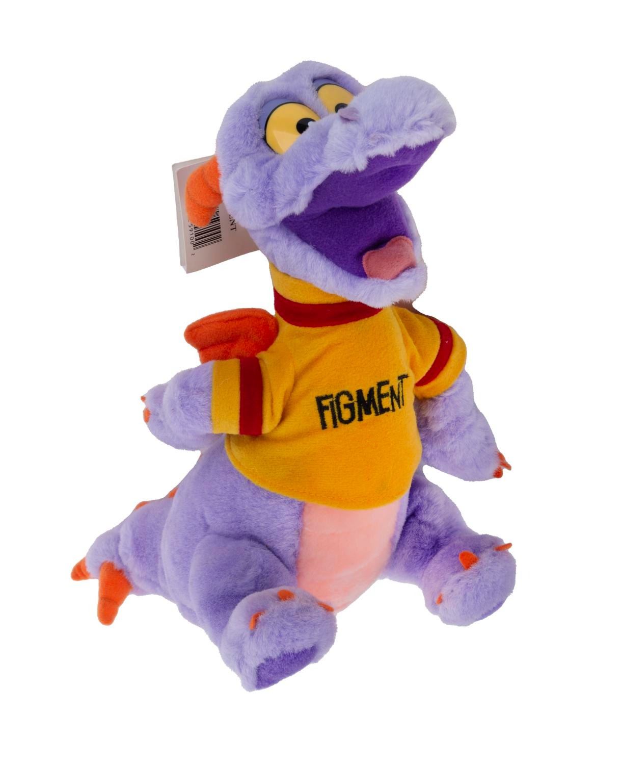 (Walt Disney World, 1990s) A Journey Into Imagination Figment Souvenir Plush with removable Velcro shirt. Measuring 14” long, this toy is in fine condition with its original Walt Disney World price tag attached.