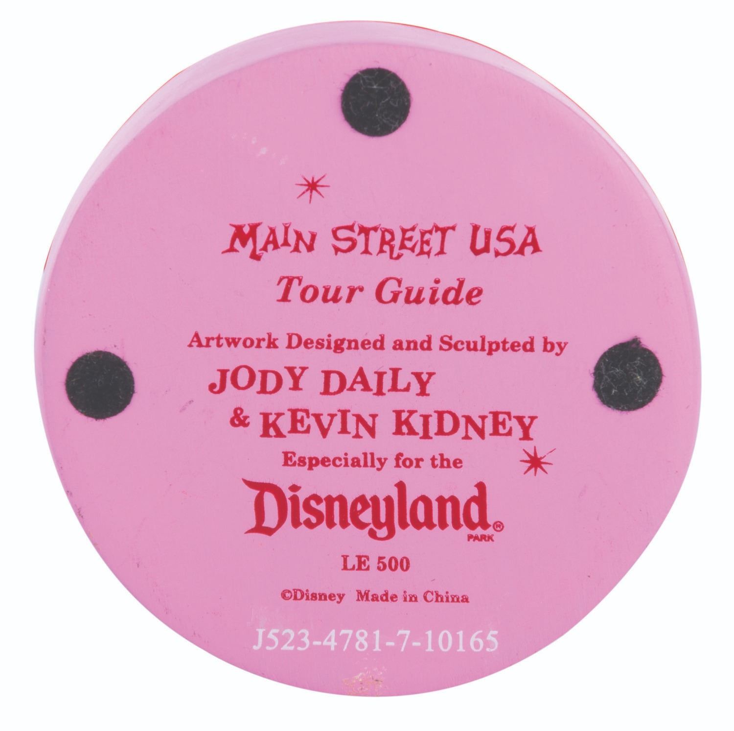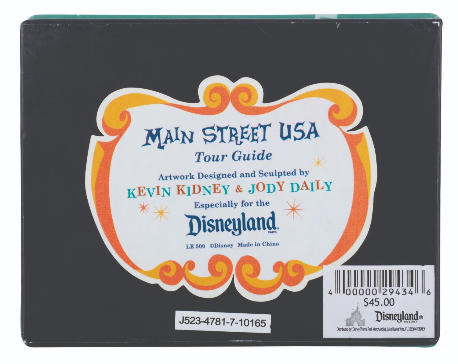 (Disneyland, 2010) A "Main Street USA Tour Guide" figure created by Kevin Kidney and Jody Daily. This figure was limited to an edition of 500 pieces, and issued in a set that celebrated the early Disneyland Cast Members. Measuring 6.5" tall, the figure is in fine condition and comes with its original box and packaging.