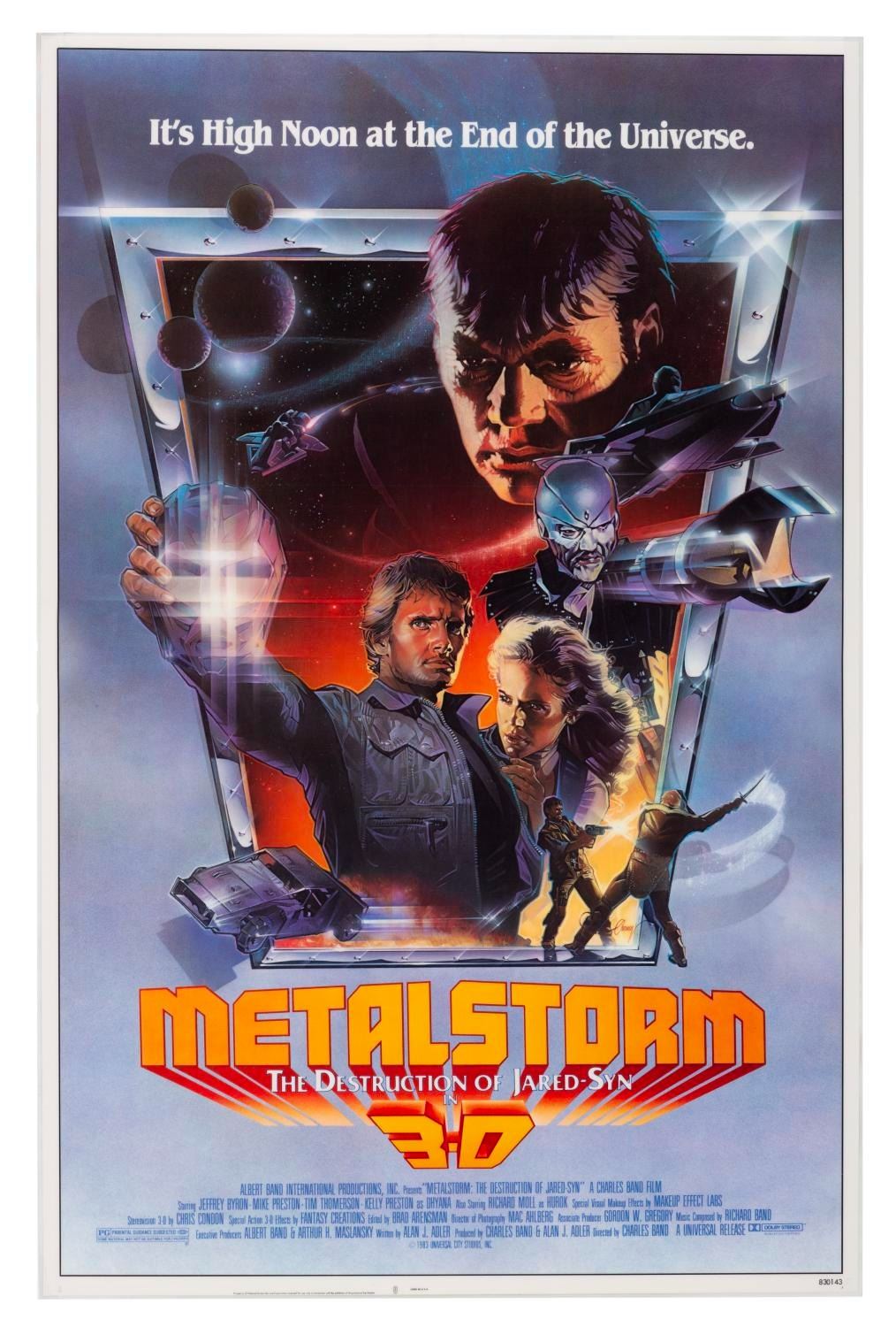 (Universal, 1983) A laminated one-sheet for the sci-fi cult film "Metalstorm: The Destruction of Jared-Syn," one of a handful of 3D films released in the 1980s. Measuring 26.25" x 40", the laminated poster displays in very good condition with very light surface wear visible in reflection only.