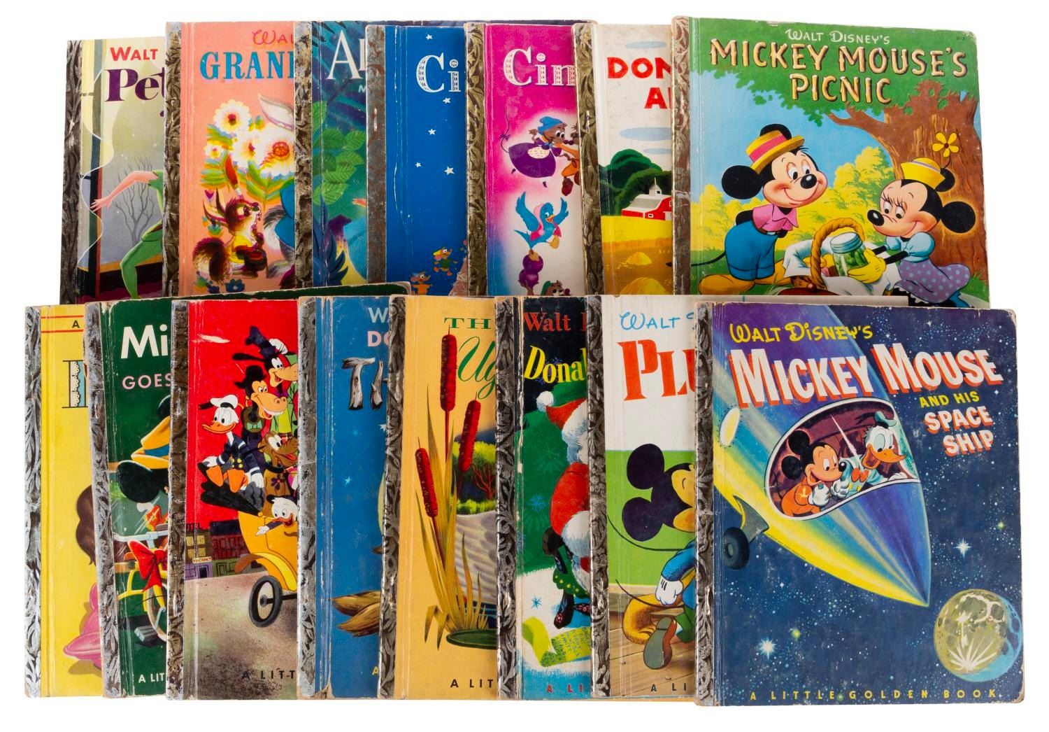 (Golden Books, 1950-1959) A collection of twenty-six Little Golden Books on Disney movies, holidays, classic stories, and more. Measuring 6.75" x 8.25", these books are in good condition with expected wear to the spines from use.