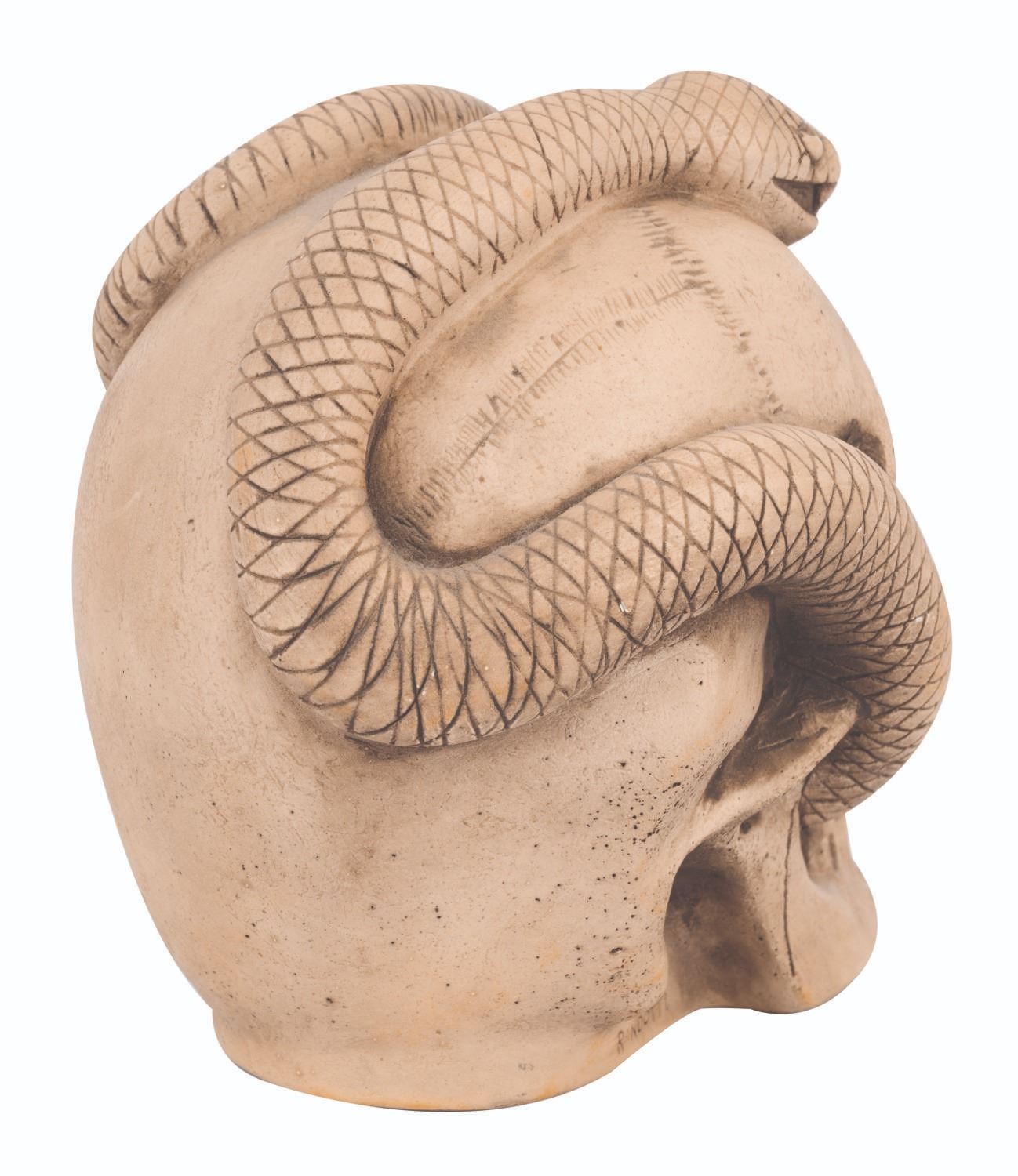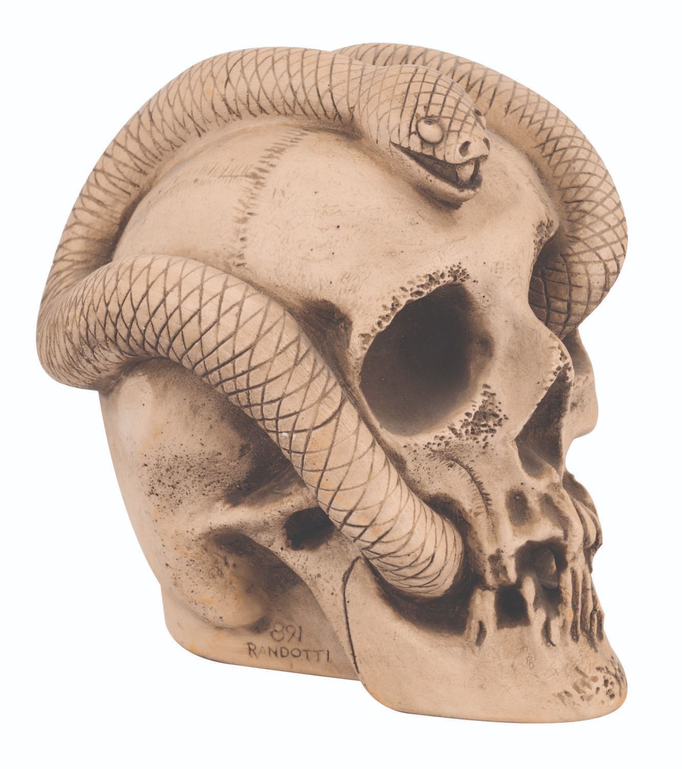 A Large Randotti Glow-In-The-Dark Skull with Snake.