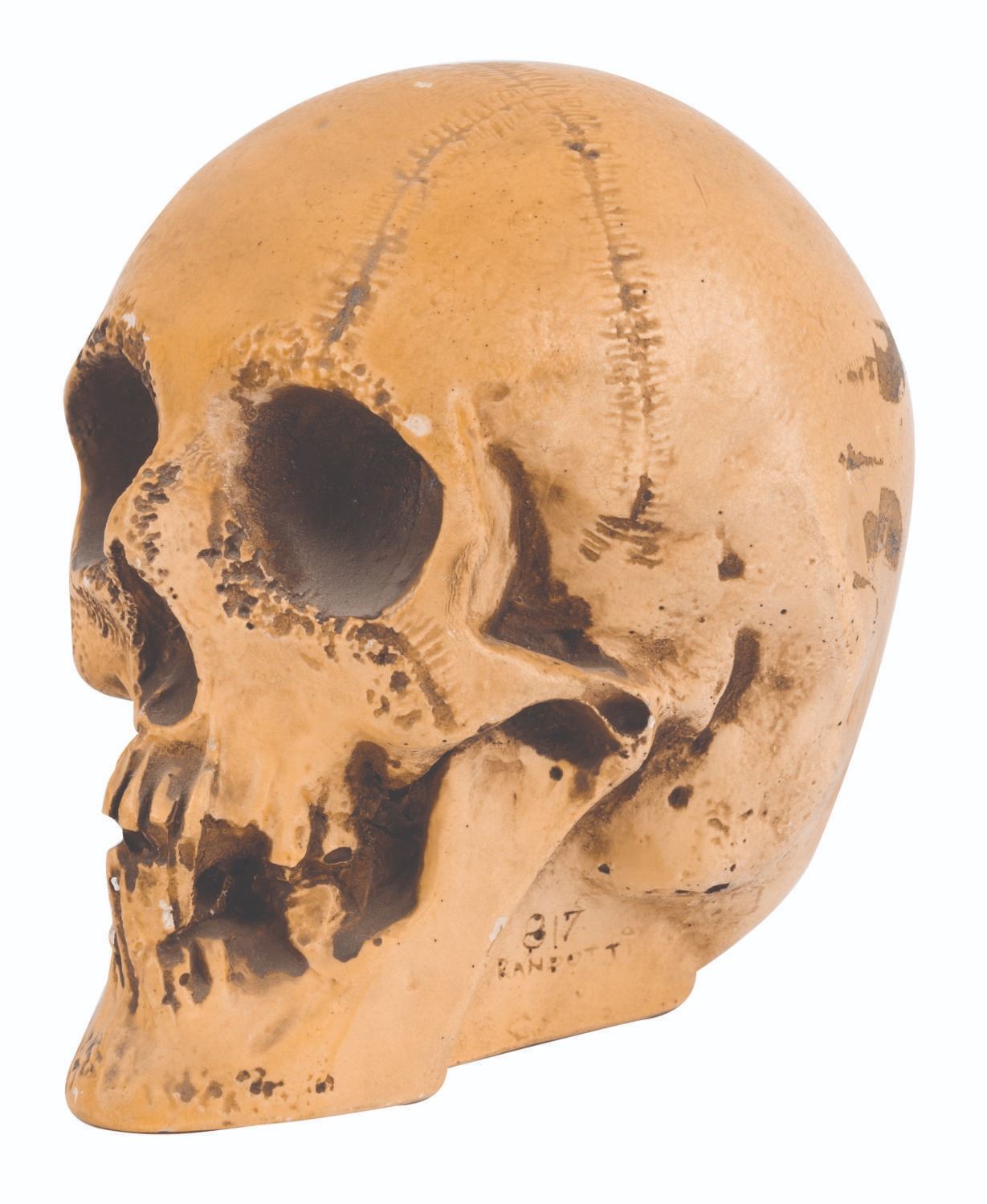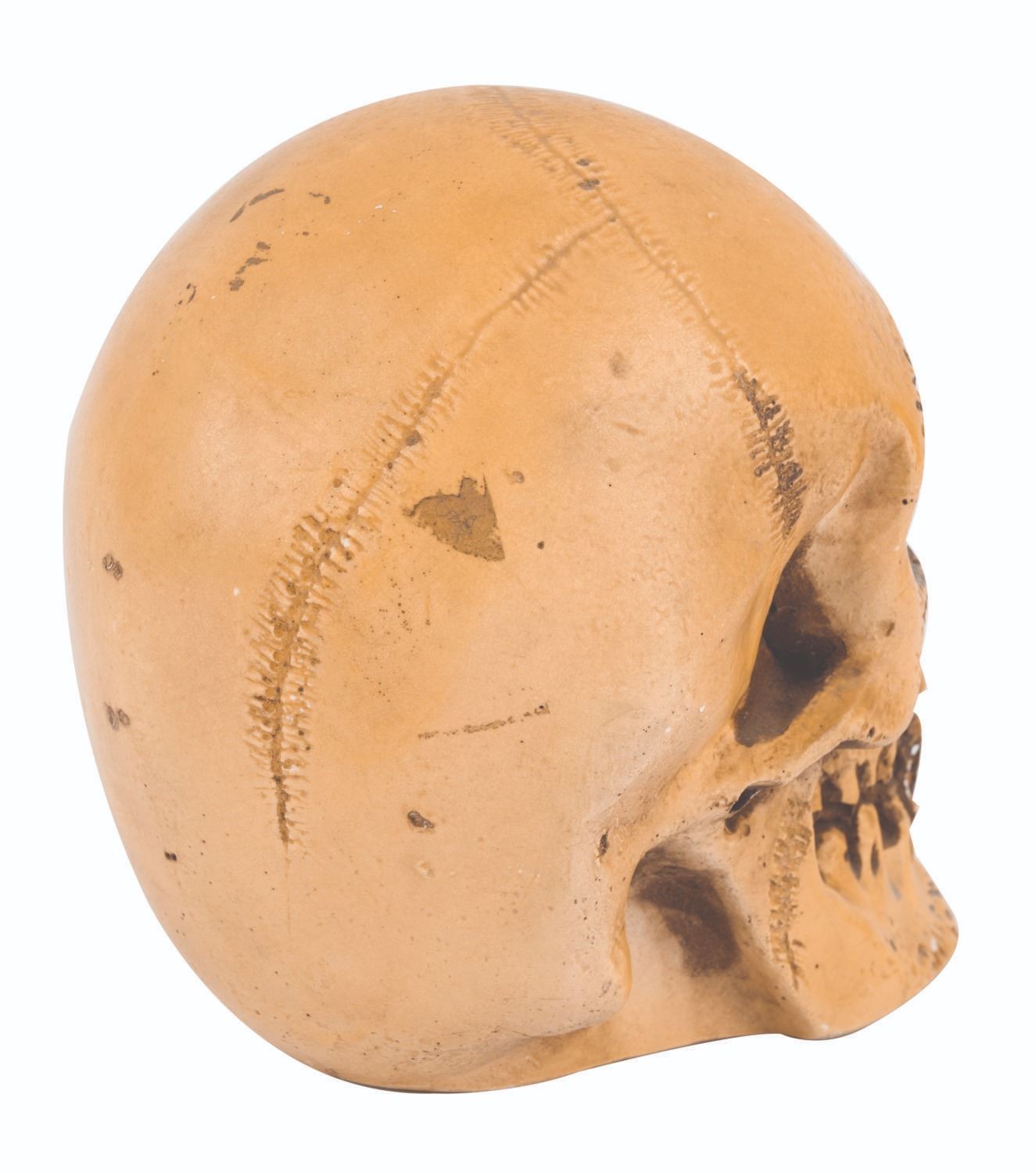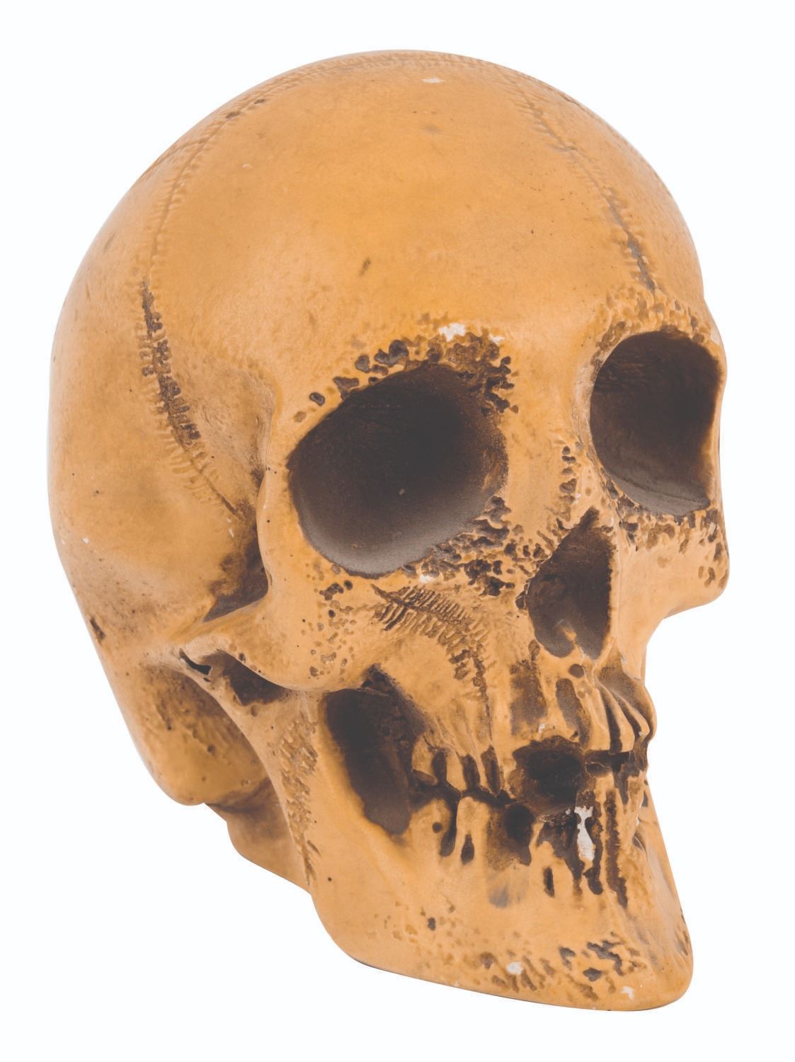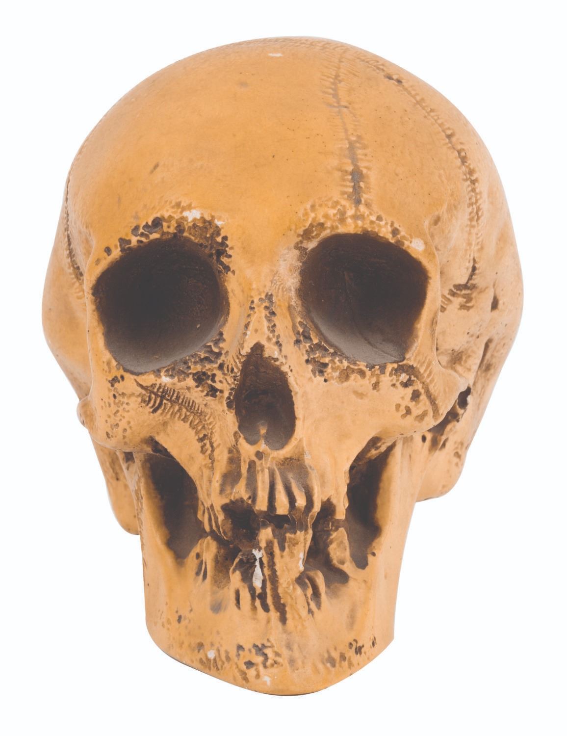 (Disneyland, 1960s-70s) A large glow-in-the-dark Voodoo Skull by Randotti. Souvenir skulls by Randotti were among the popular and decorative souvenir merchandise once offered in Adventureland at Disneyland. This vintage resin skull measures 6"x6", and is in very good condition, exhibiting a few chips and wear to its painted areas.