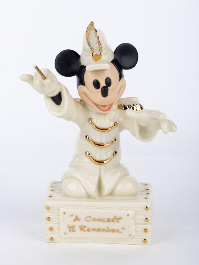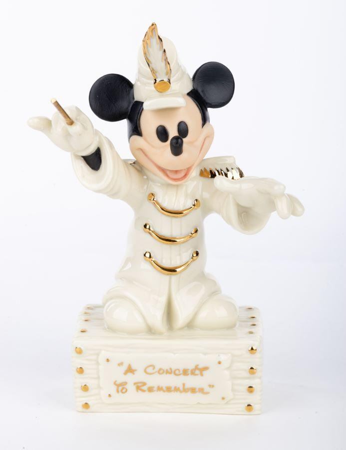 (Lenox, 2001) A Lenox Mickey Mouse "A Concert to Remember" figure. This hand-crafted figure of ivory china is hand-numbered 28/500 and was released in a limited edition for the 2001 Disneyana Convention. Measuring 4" x 4.25" x 6.5" tall, the figurine is in fine condition.