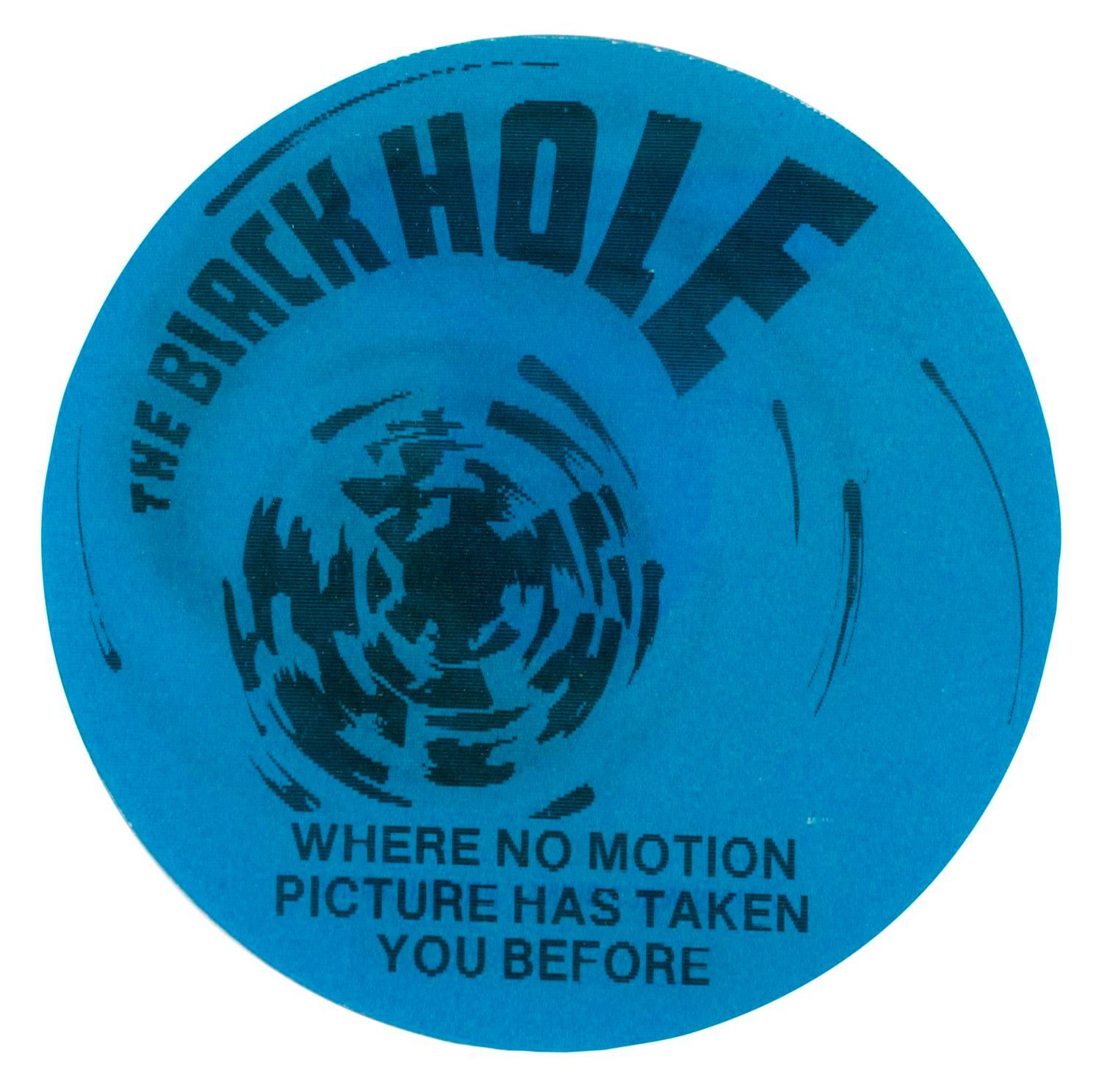 (Disney, 1979) A rare lenticular promotional button for Disney’s feature film "The Black Hole." Measuring 3" in diameter, the button displays in very good condition with light scratches and wear.
