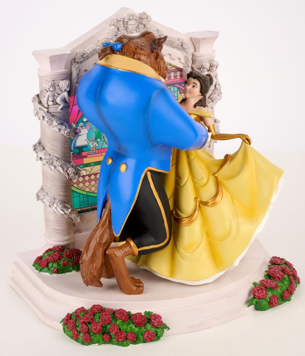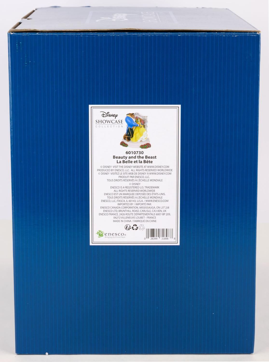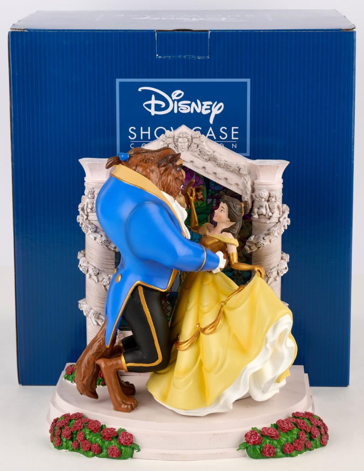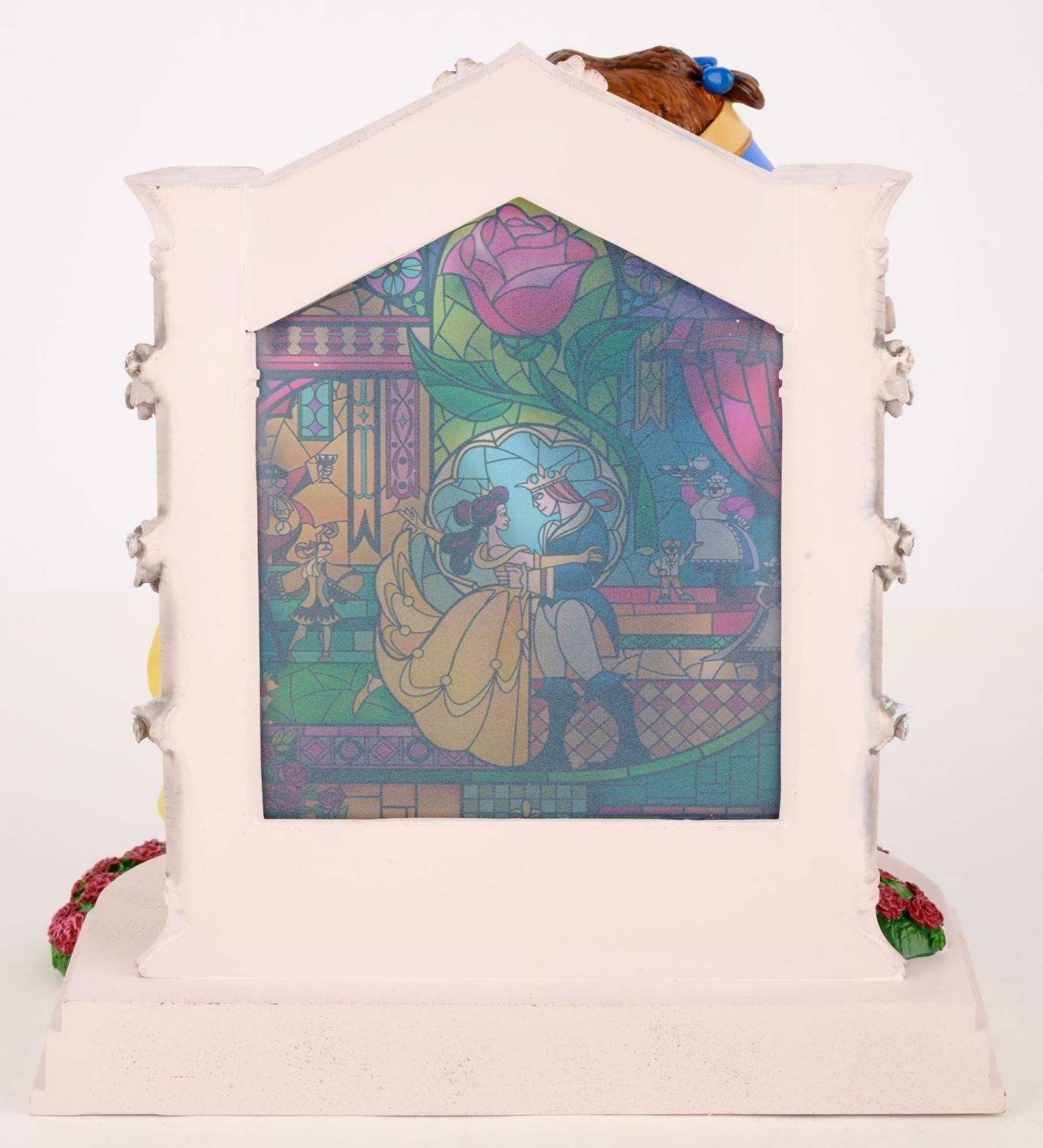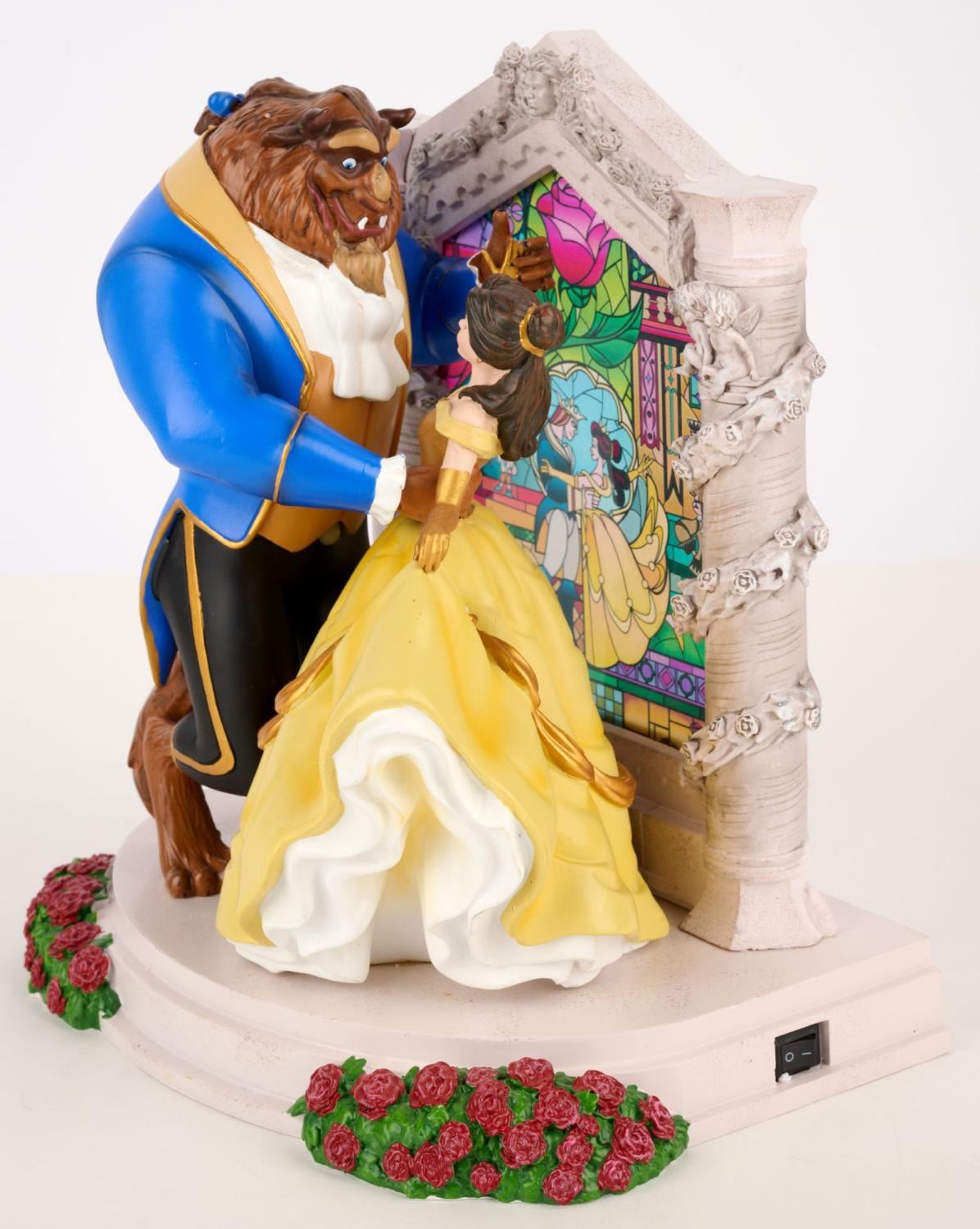 (Enesco, 2022) A Disney Showcase Collection light-up figurine of Belle and the Beast from Disney’s "Beauty and the Beast." With 3-AAA batteries (not included), the stained glass window lights up, working when tested. Measuring 8.5" x 6" and 9" tall, the figurine is in fine as-new condition and comes with the original 11.25" x 8.75" x 12" box.