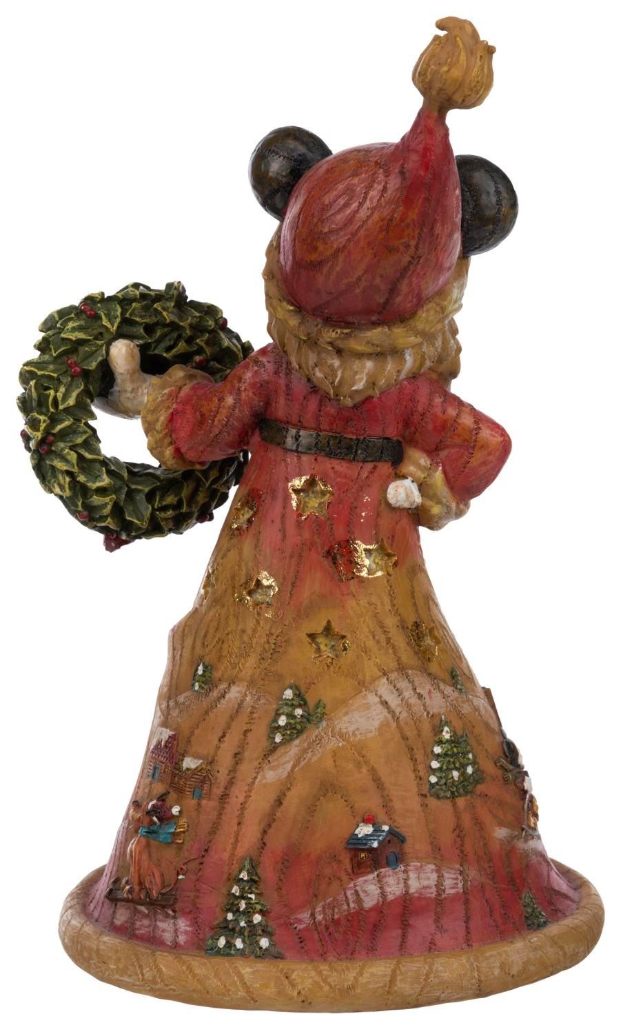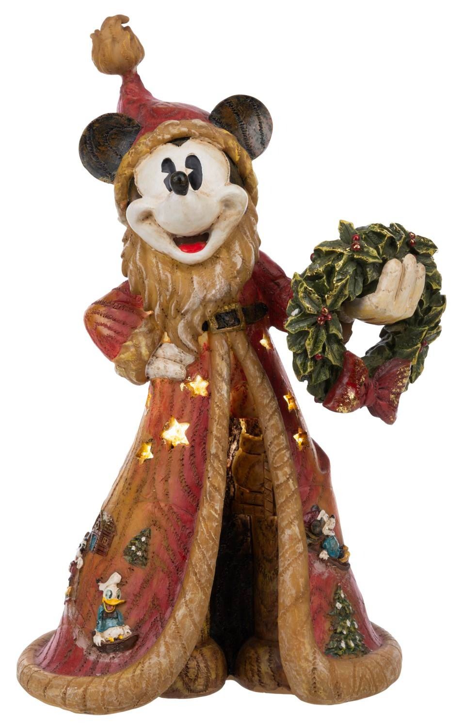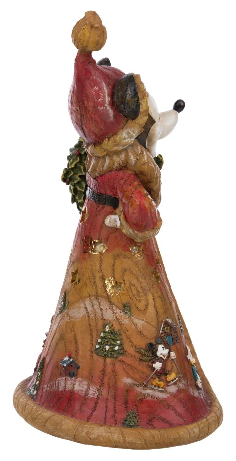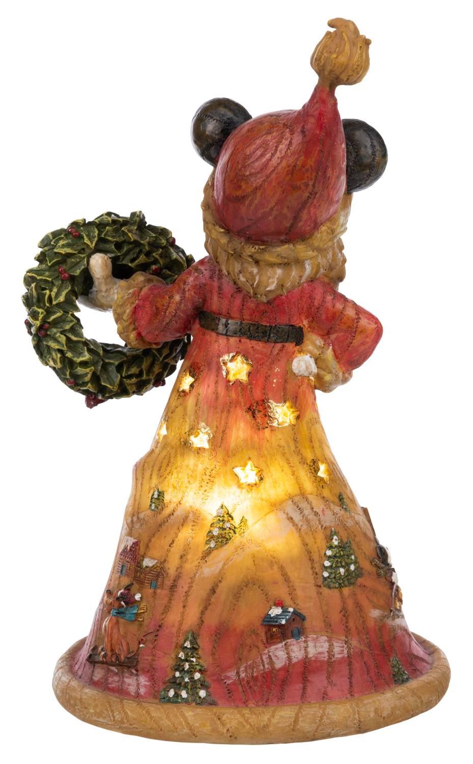 (Disney, 1990s) A Woodland"Santa Mickey on Stiltz" figurine that lights up with the use of two AA batteries (not included). Measuring 7" x 6" x 11" tall, the Mickey figurine is in good working condition with a missing battery cover screw.