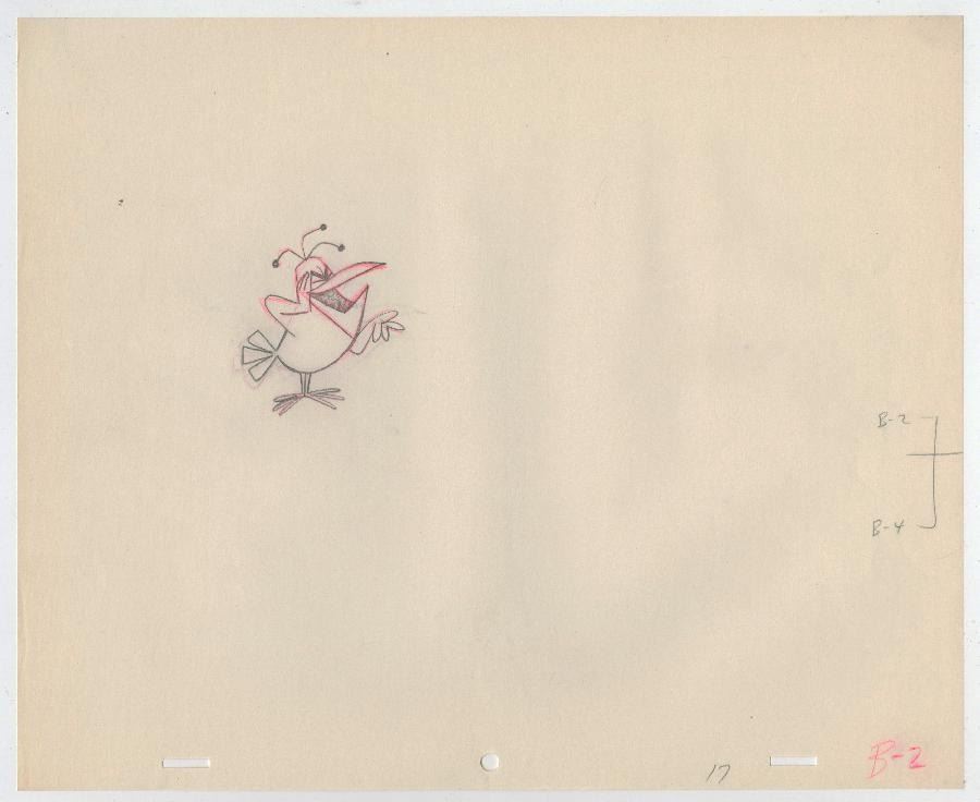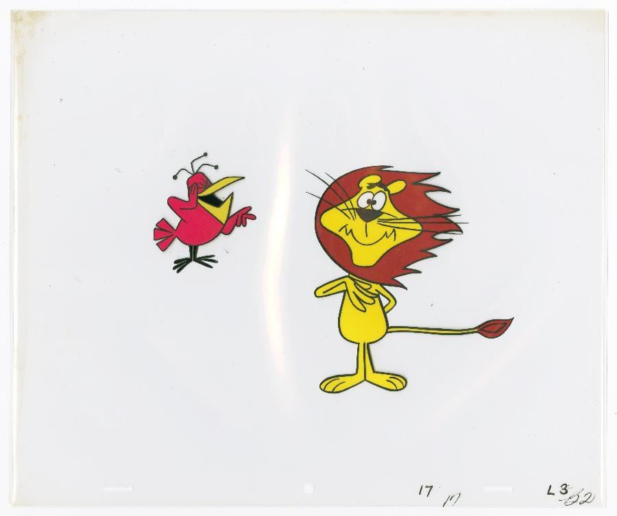 (CBS, 1964-1965) An original production cel and pair of matching drawings of King Linus and Billy Bird from the Ed Graham Studios “Linus the Lionhearted.” The character image measures 5.25” x 7.5” on a 10.5” x 12.5” cel and animation paper. The hand-painted cel and graphite drawings are in very good condition with minimal line wear and discoloration, and handling wear to the drawings.