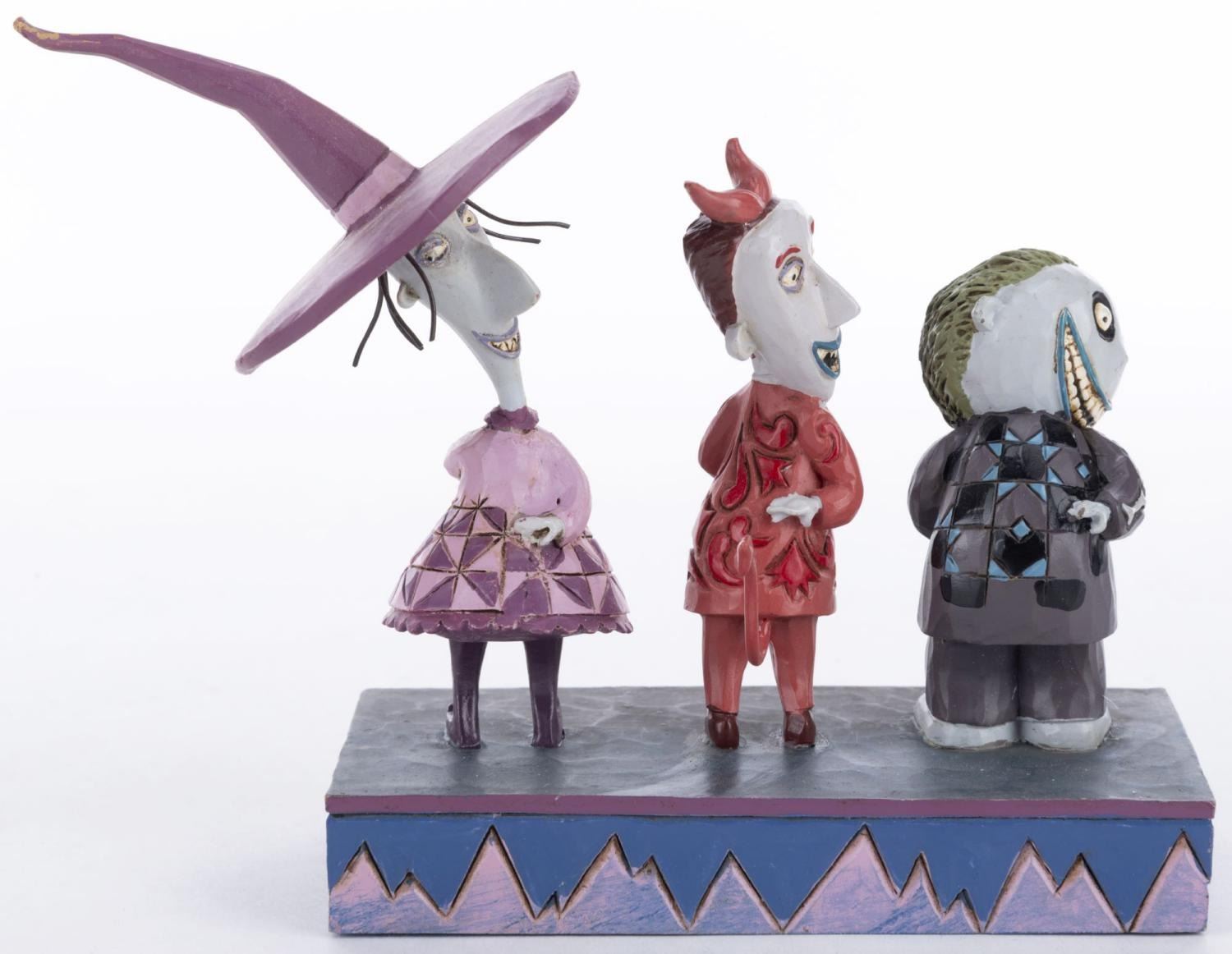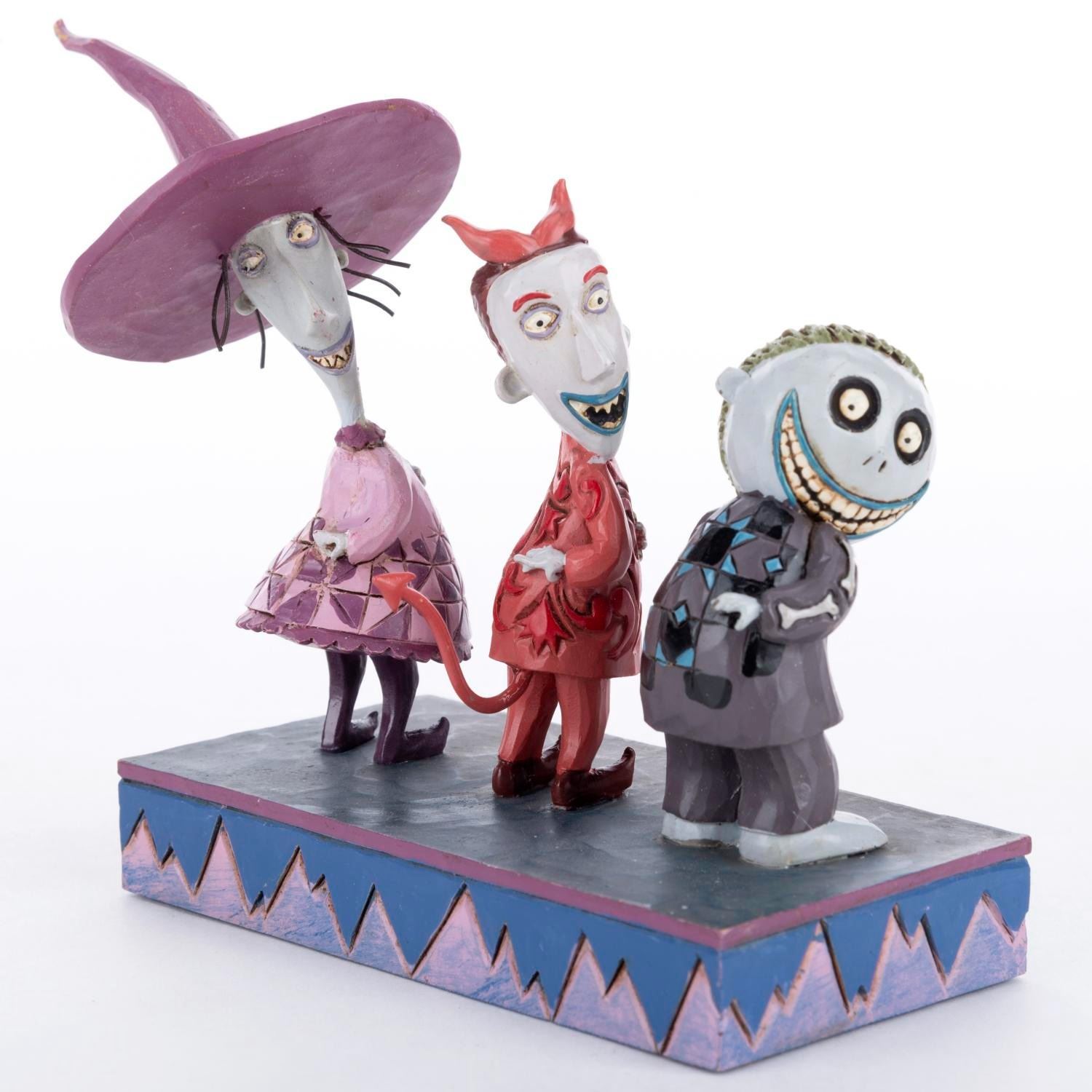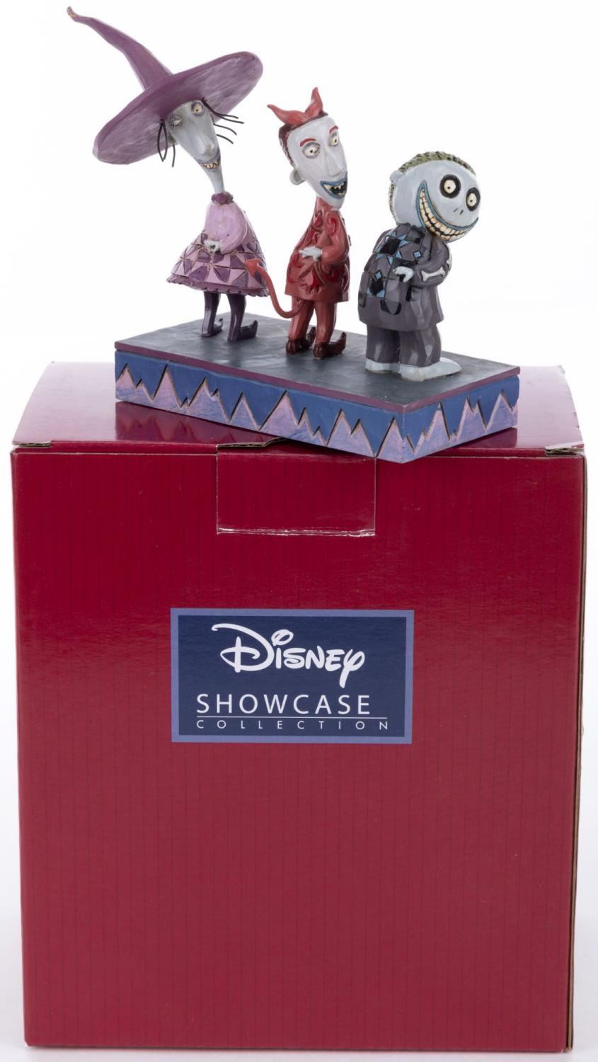 (Enesco, 2012) A Disney Traditions figurine of Lock, Shock, and Barrel from "Tim Burton's The Nightmare Before Christmas." Titled 'Up to No Good,' the polyresin figurine was designed by Jim Shore and released as part of the Disney Showcase Collection. The figurine is in fine condition.