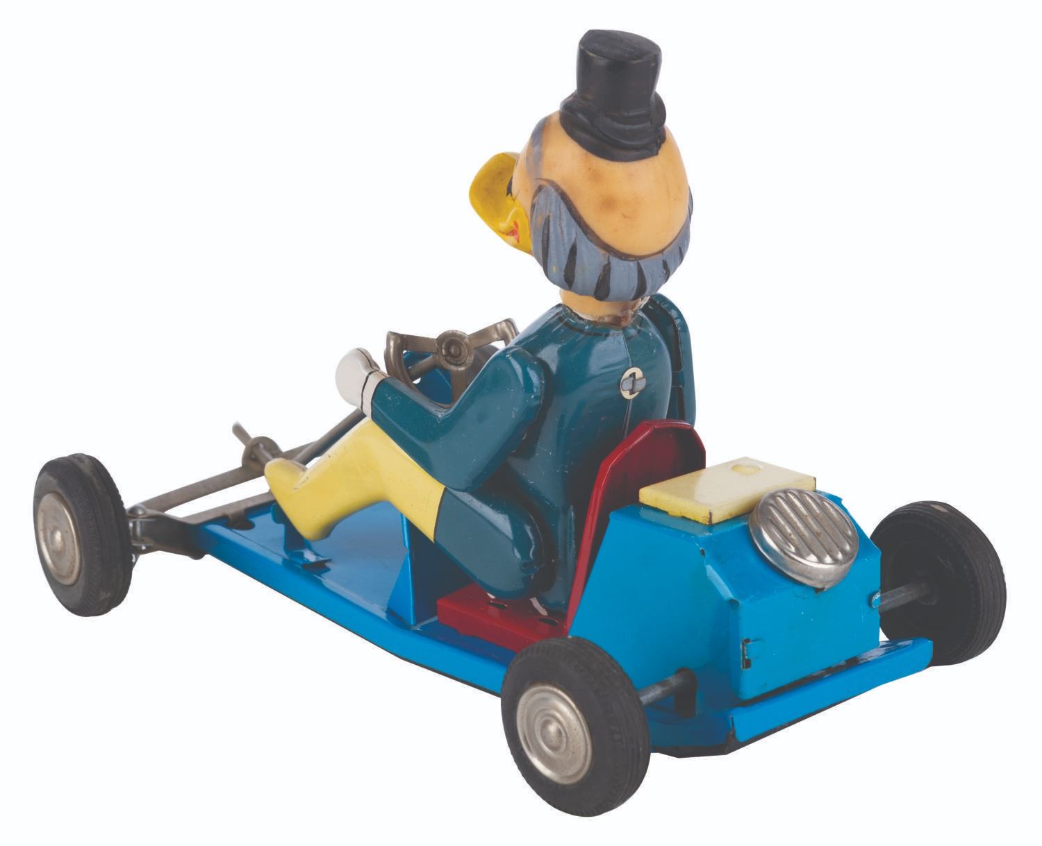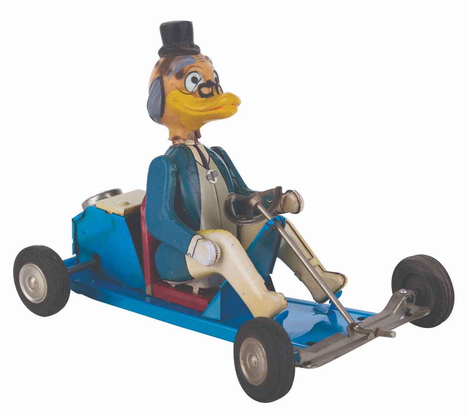 (LineMar, 1961) A Ludwig Von Drake Go-Cart tin friction toy featuring lithographic imagery on the body. The toy is in very good condition with light color fading to head, and scuffs and wear overall.