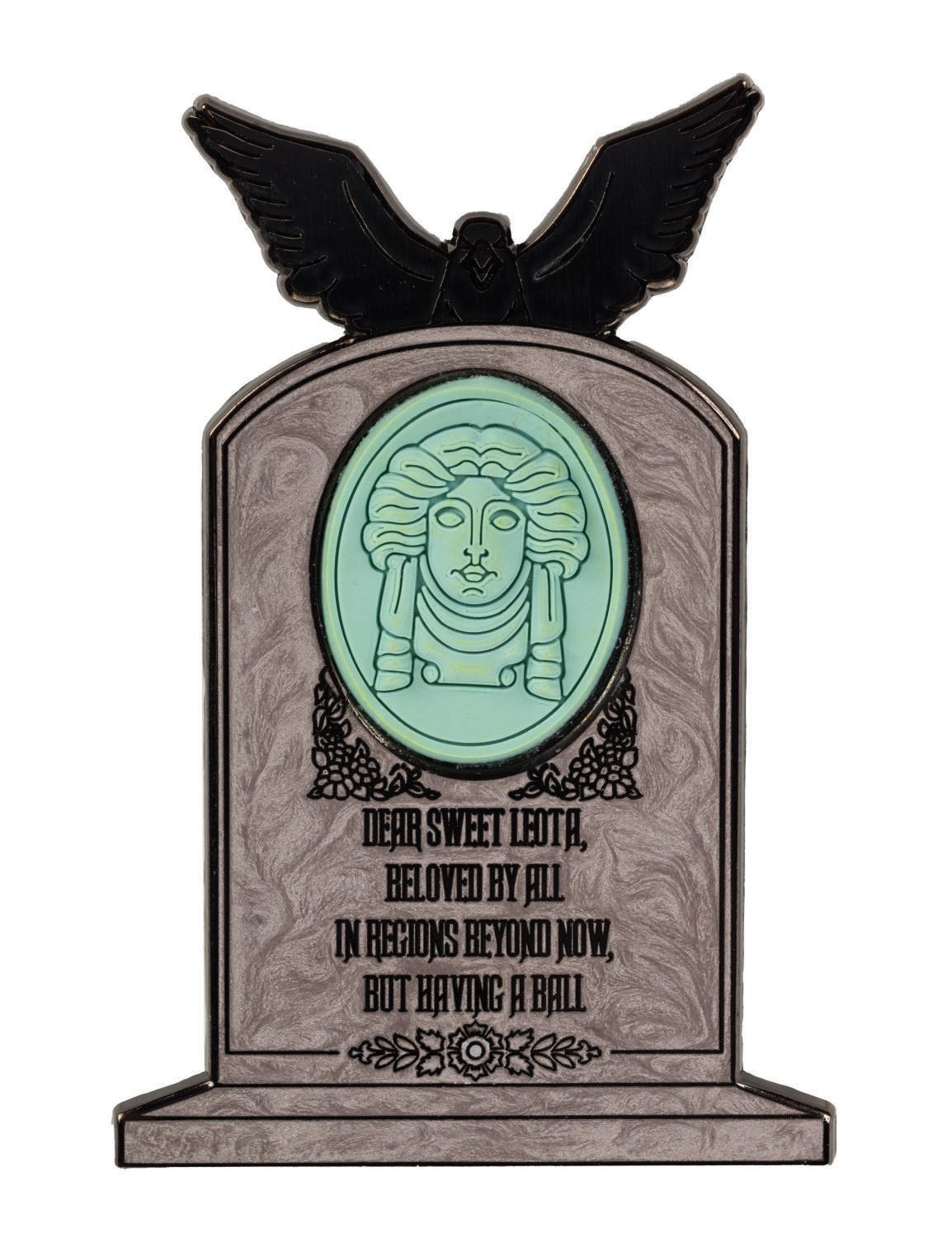 (Walt Disney World, 2011) A Madame Leota Tombstone pin & Certificate of Death produced for the "Room for 1 More" event at The Magic Kingdom. The pin of Madame Leota's tombstone topped with a raven features a pvc relief over enamel and was released in an edition of 500. The pin measures approximately 2.25"x1.5" while the Certificate of Death measures 5"x7", each piece is in fine condition in original packaging.